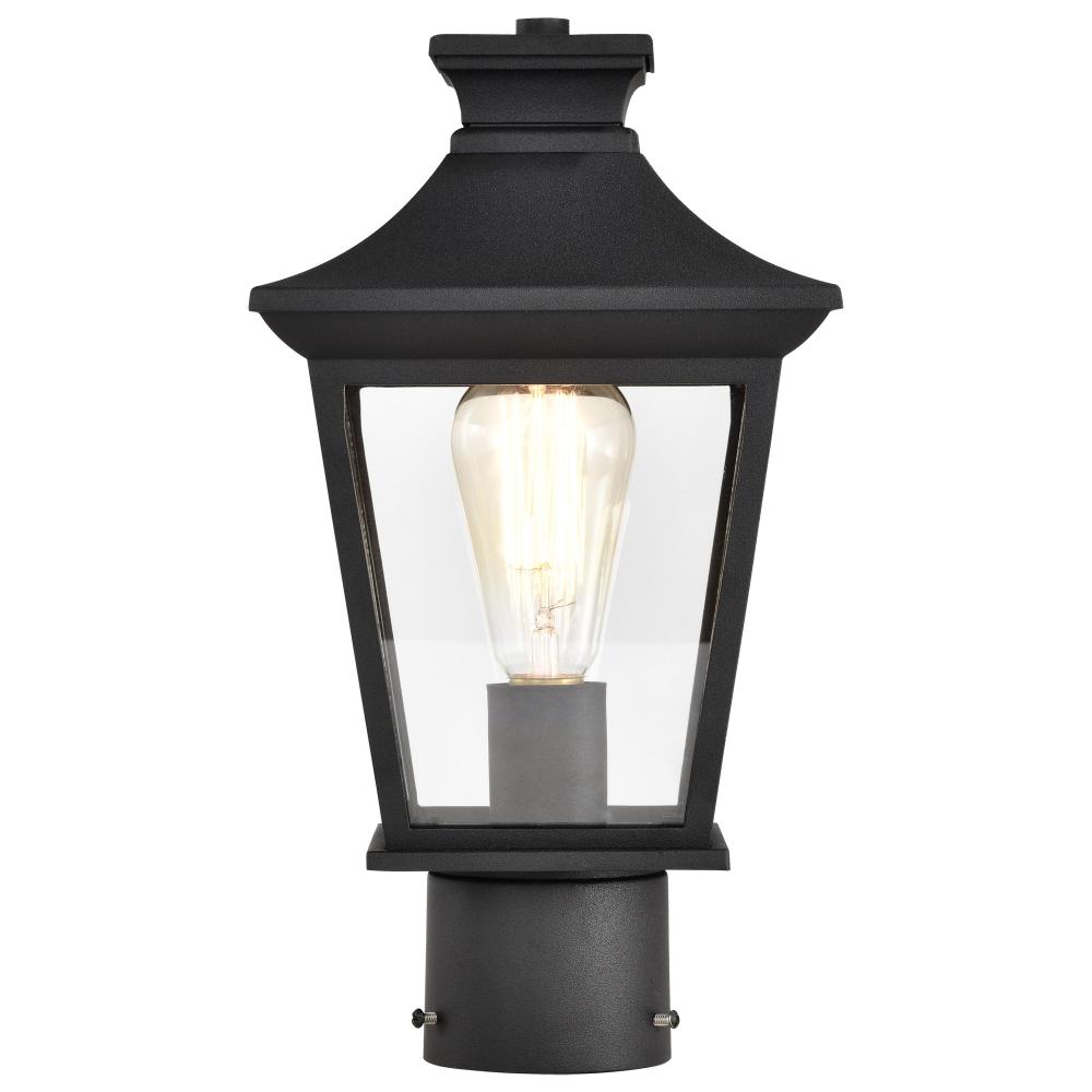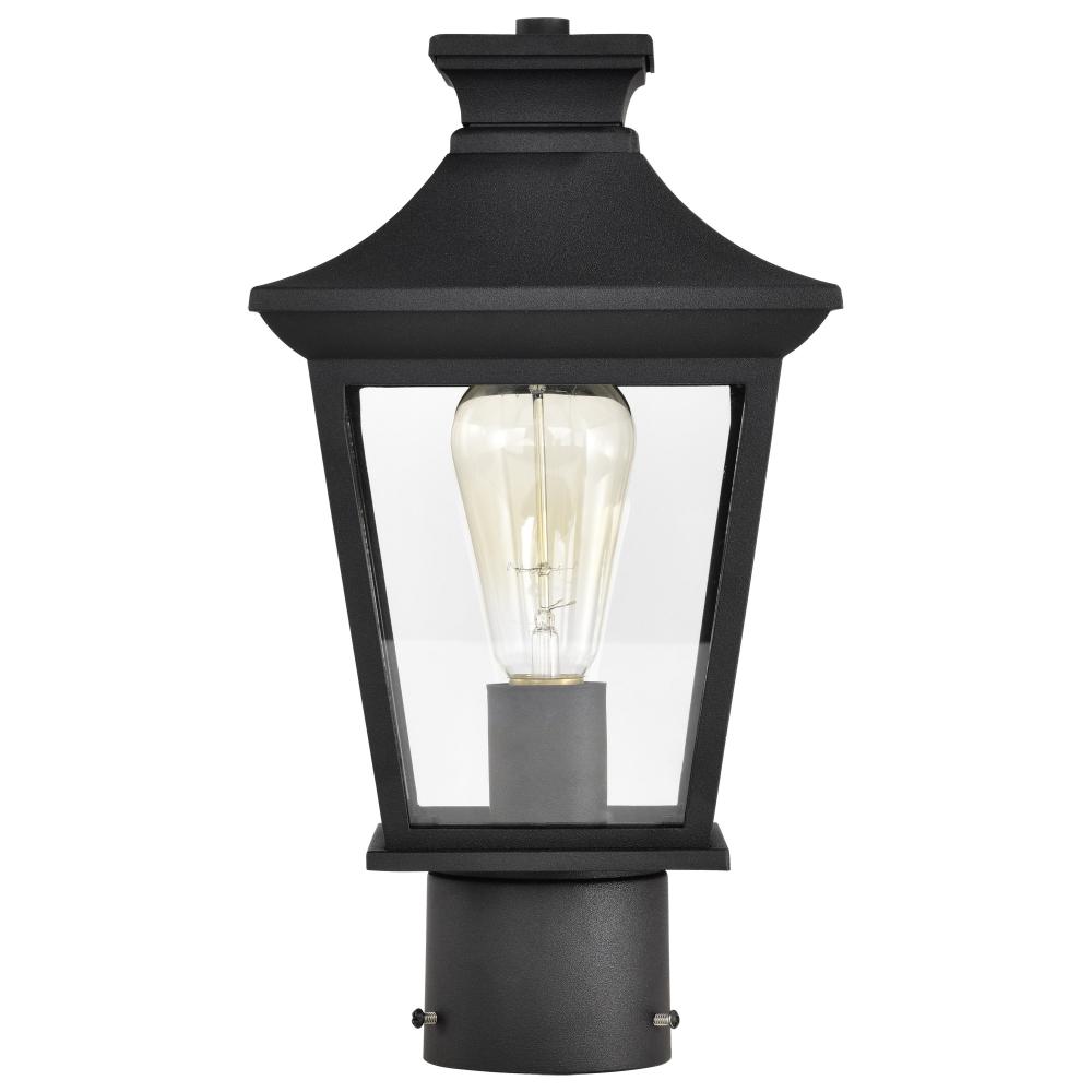 Jasper Collection Outdoor 14 inch Post Light Pole Lantern; Matte Black Finish with Clear Glass