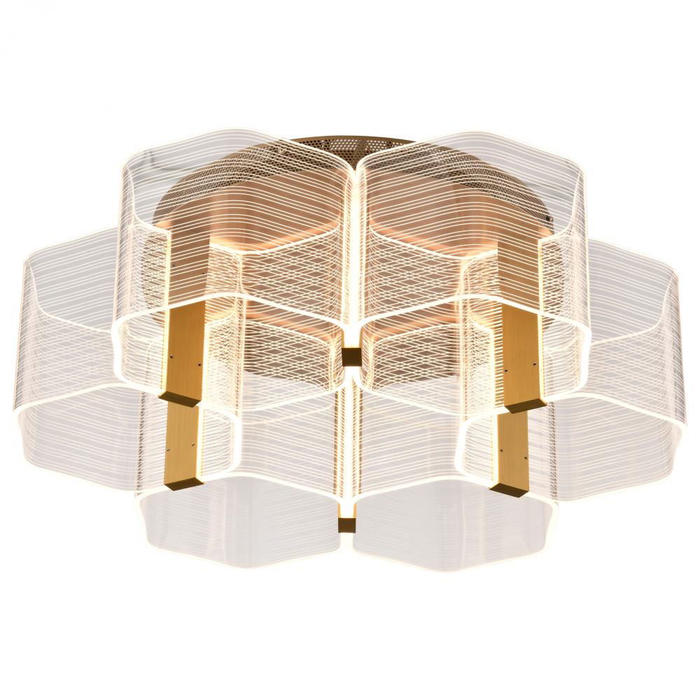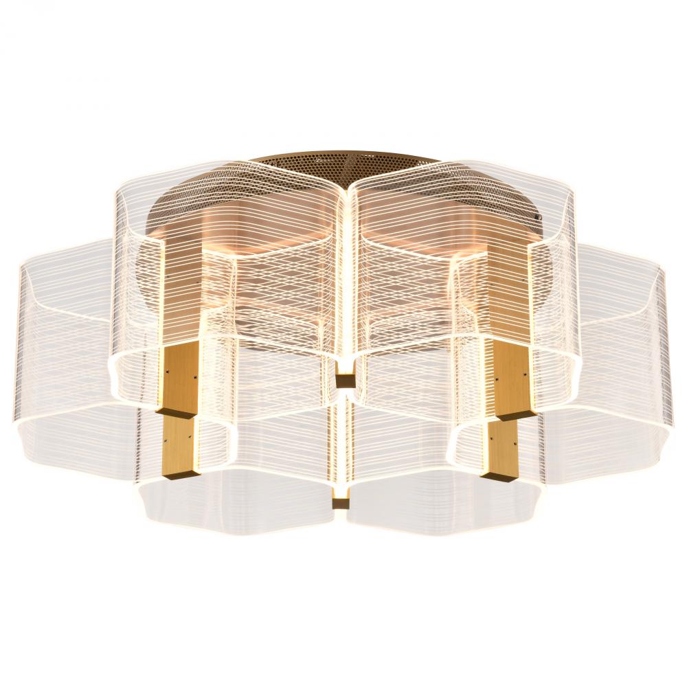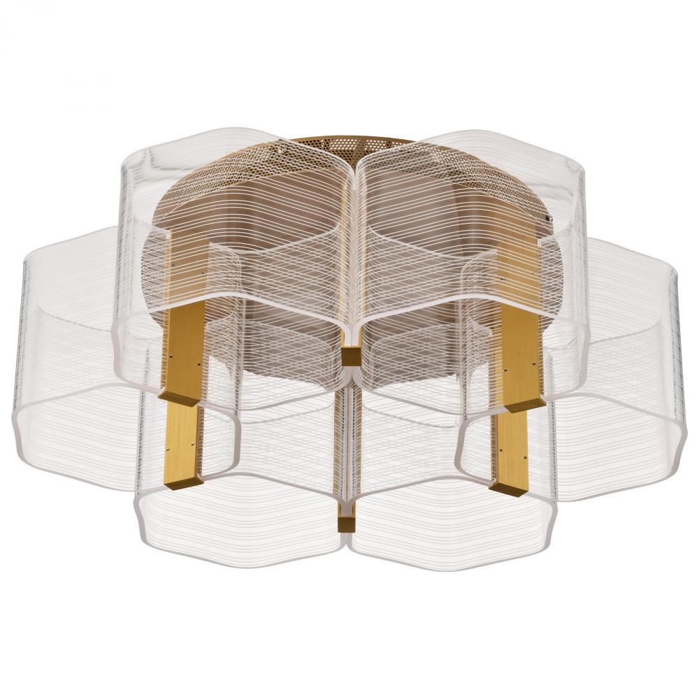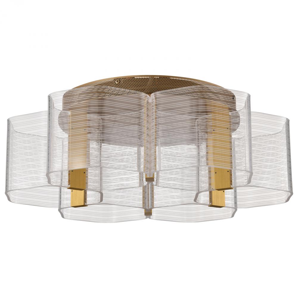 Kenzo; LED 6 Light Flush Mount; Vintage Brass Finish; Light Guide Panel