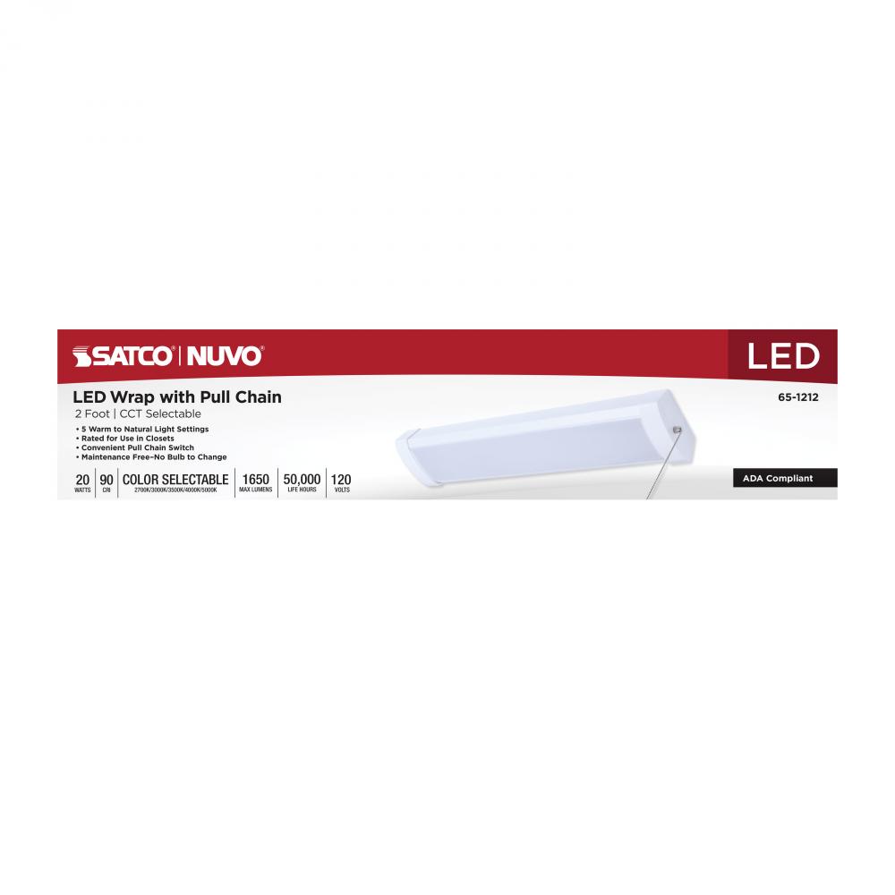 SATCO NUVO's 65-1212 2-foot pull chain LED wrap fixture delivers exceptional lighting performance with a 90 CRI, ensuring enhanced color accuracy. Featuring 5 CCT selectable technology, it allows for customizable color temperatures while providing opti