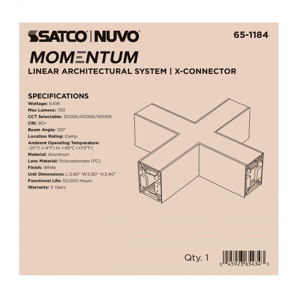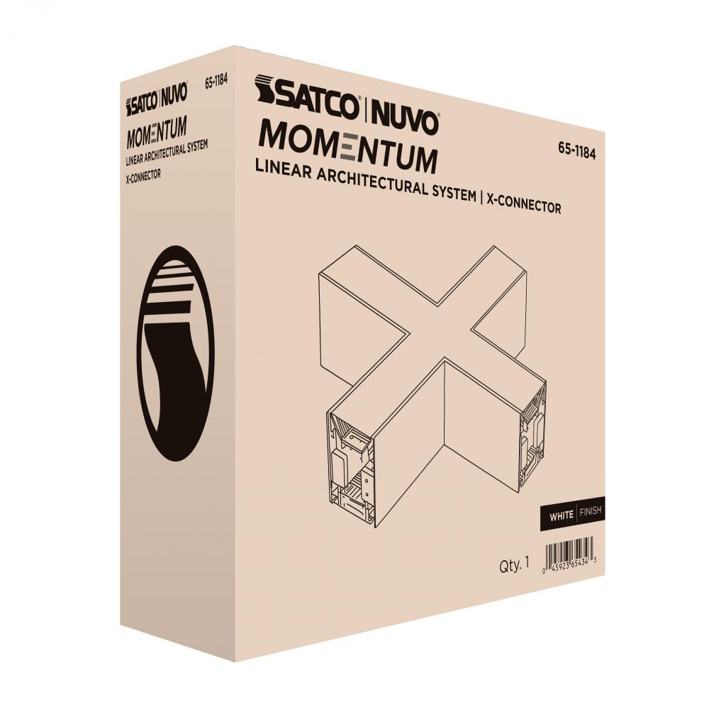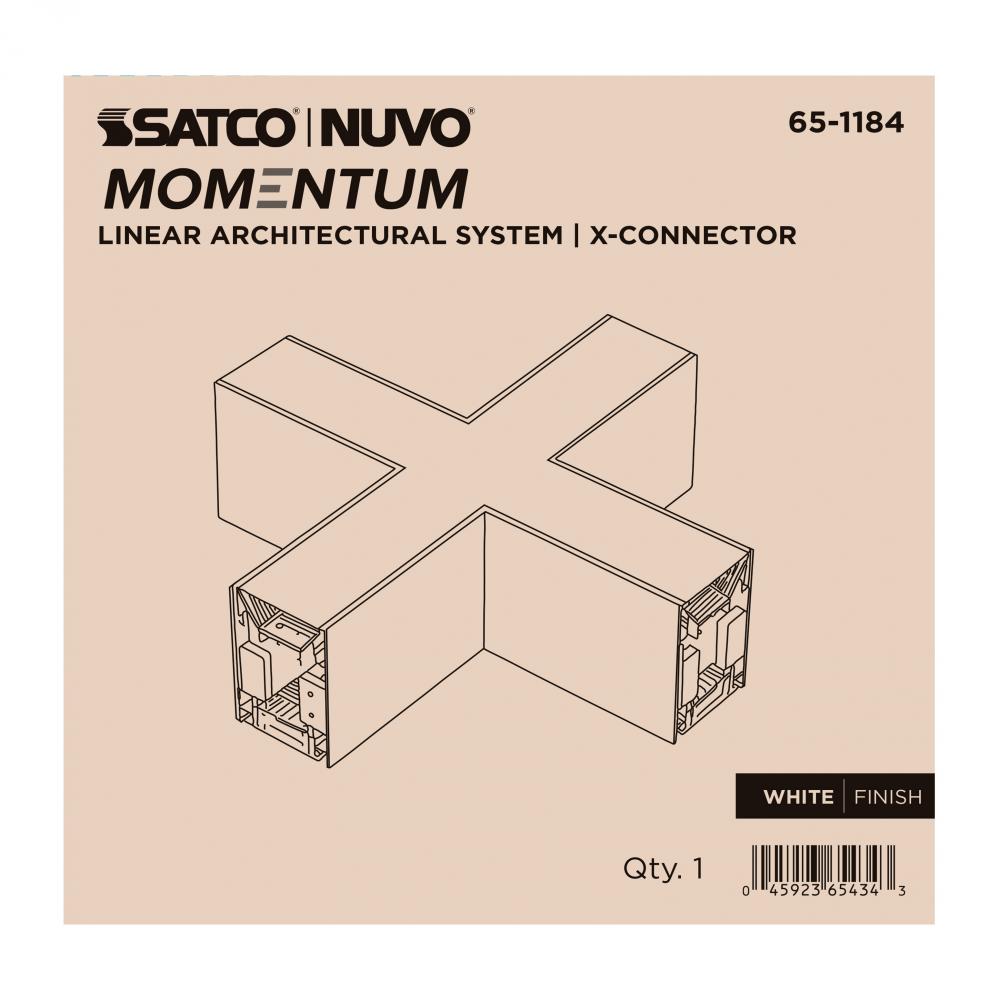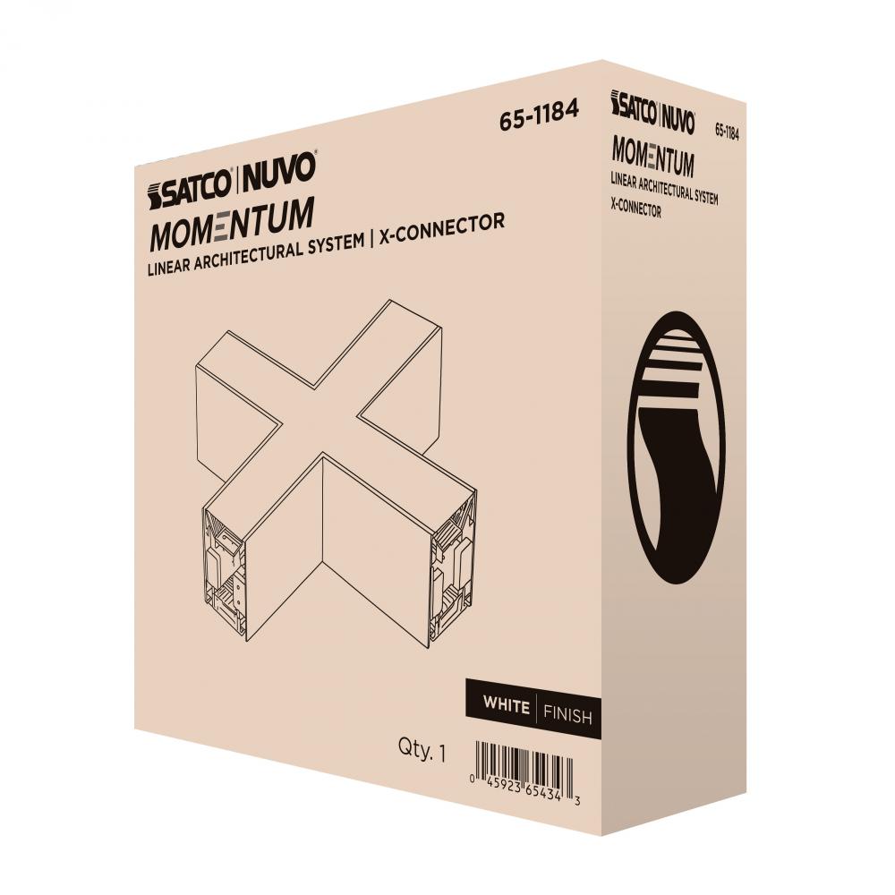 SATCO's 65-1184 X-Connector is available in a white finish. This accessory item is sold separately for use with the Momentum linear architectural system. It is ideal for complex junction points and multi-directional light runs in grid-like designs.