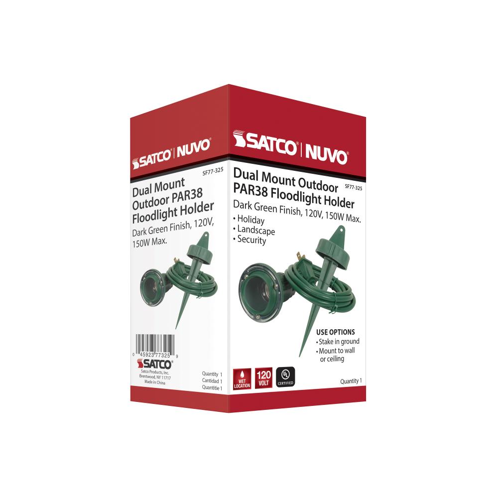 Satco's SF77-325 floodlight holder is both practical and versatile. This dual mount, outdoor floodlight holder comes in a dark green finish with a 6 foot cord. Durable and versatile, this floodlight holder is perfect for holiday decorations, landscapin