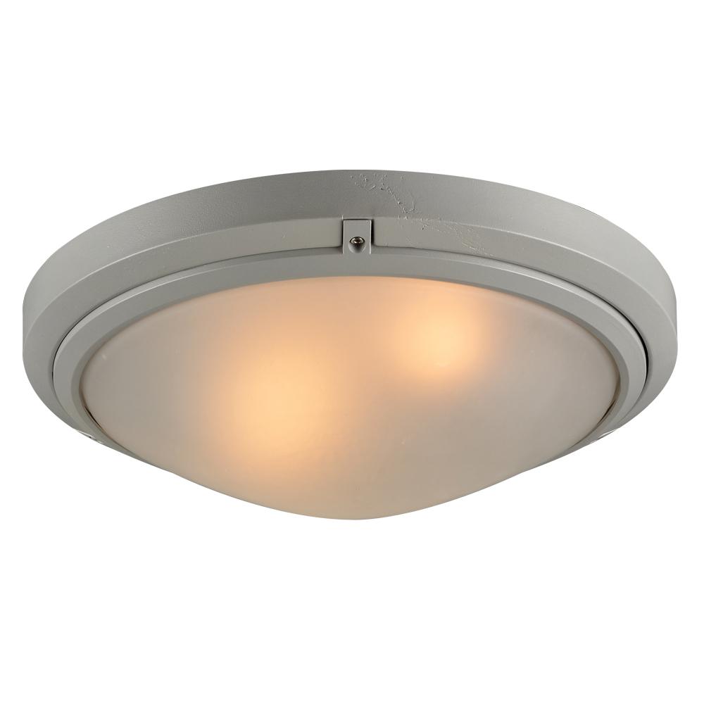 Versatile modern design are the traits of this 2 Light Outdoor Fixture from the Ricci-II Collection is the ideal exterior light. This model can be mounted on ceiling and/or wall making it the perfect accompaniment for any garden location. 5.5" high and 16" wide, using 120v requiring two 26w compact energy saving fluorescent bulbs this sophisticated light has frost glass and an exceptional quality silver finish.
