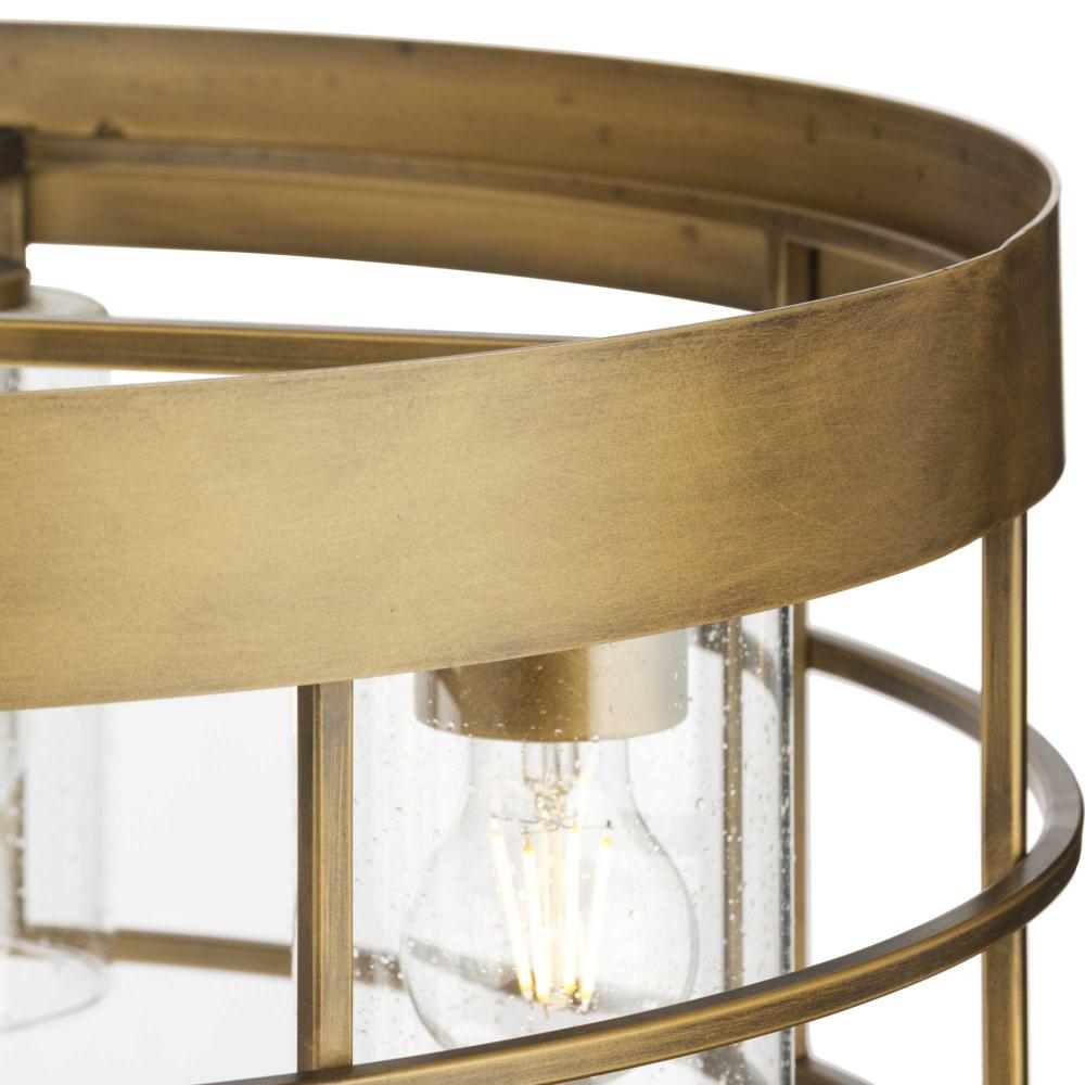 A modern adaptation of a rustic style, Burgess brings authenticity and honesty to modern farmhouse and modern craftsman settings. A geometric surround encloses seeded glass diffusers to deliver warm illumination to any room. This fixture is part of the Progress Lighting Design Series, a lighting collection offering fashionable styles and affordable luxury lighting for the home.