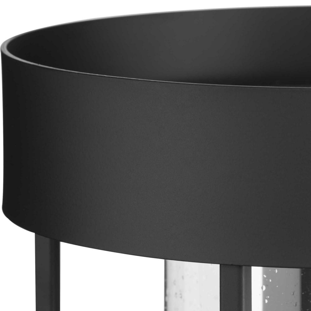 The fixture is coated with a soft matte black finish, enhancing its rustic design