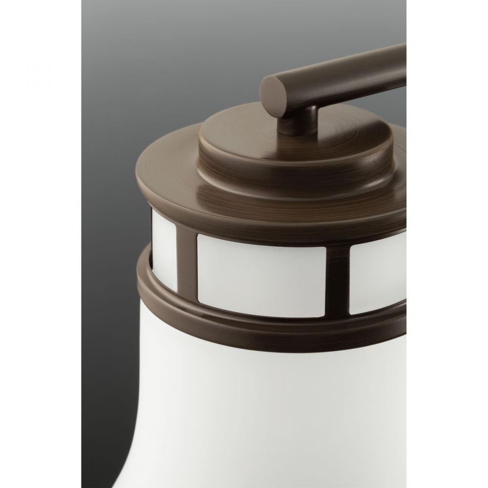 Nine-light, two-tier chandelier with smooth forms and windowpane style gallery that produce a beautiful, modern gas light effect. Overscaled tubing and etched glass shades offer substance within the sleek frame. Antique Bronze finish.