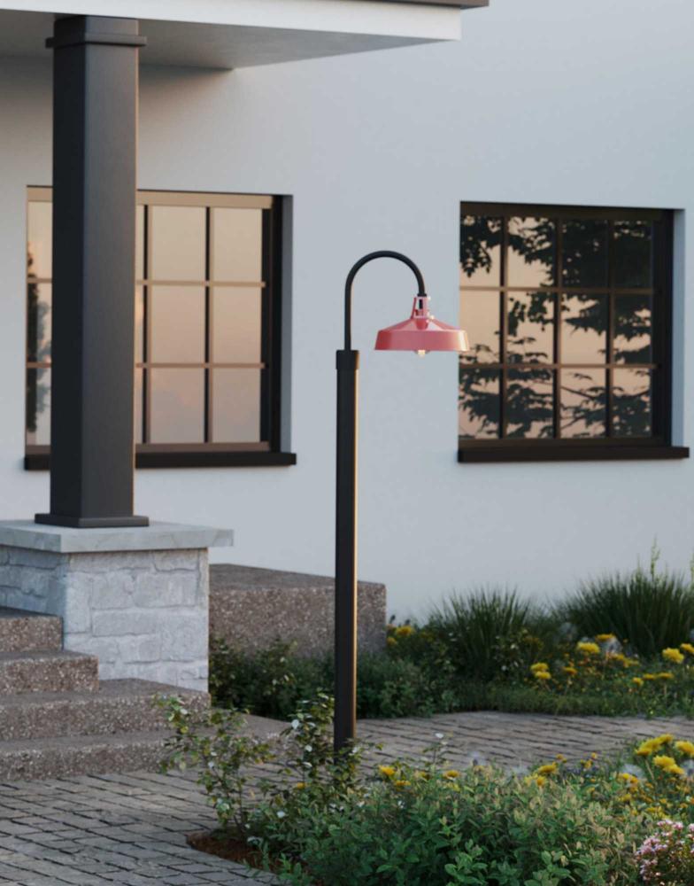 Its timeless, simple metal shade is Dark Sky Friendly and coated in a gorgeous red finish that suits many decor styles