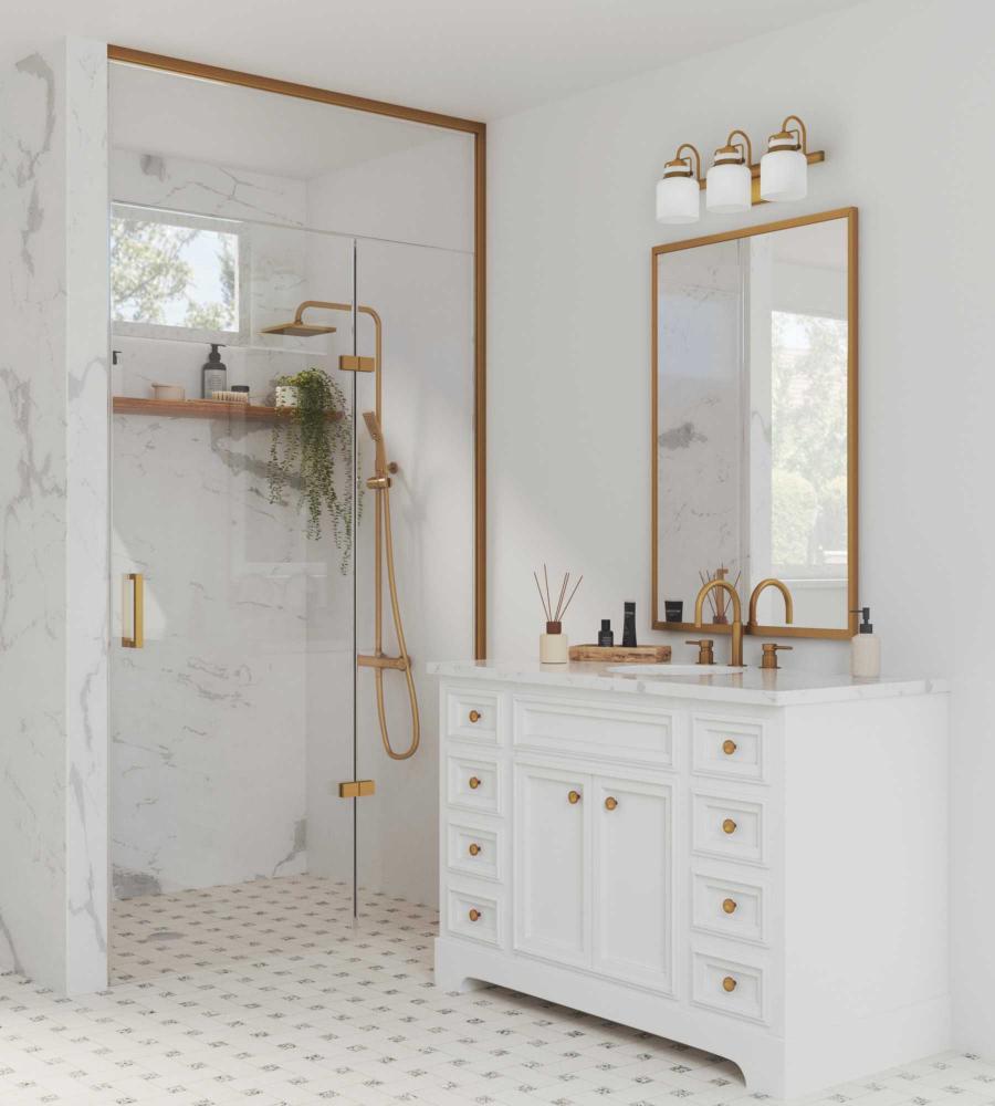 Fessler Collection Three-Light Vintage Brass Opal Glass Farmhouse Bath Light