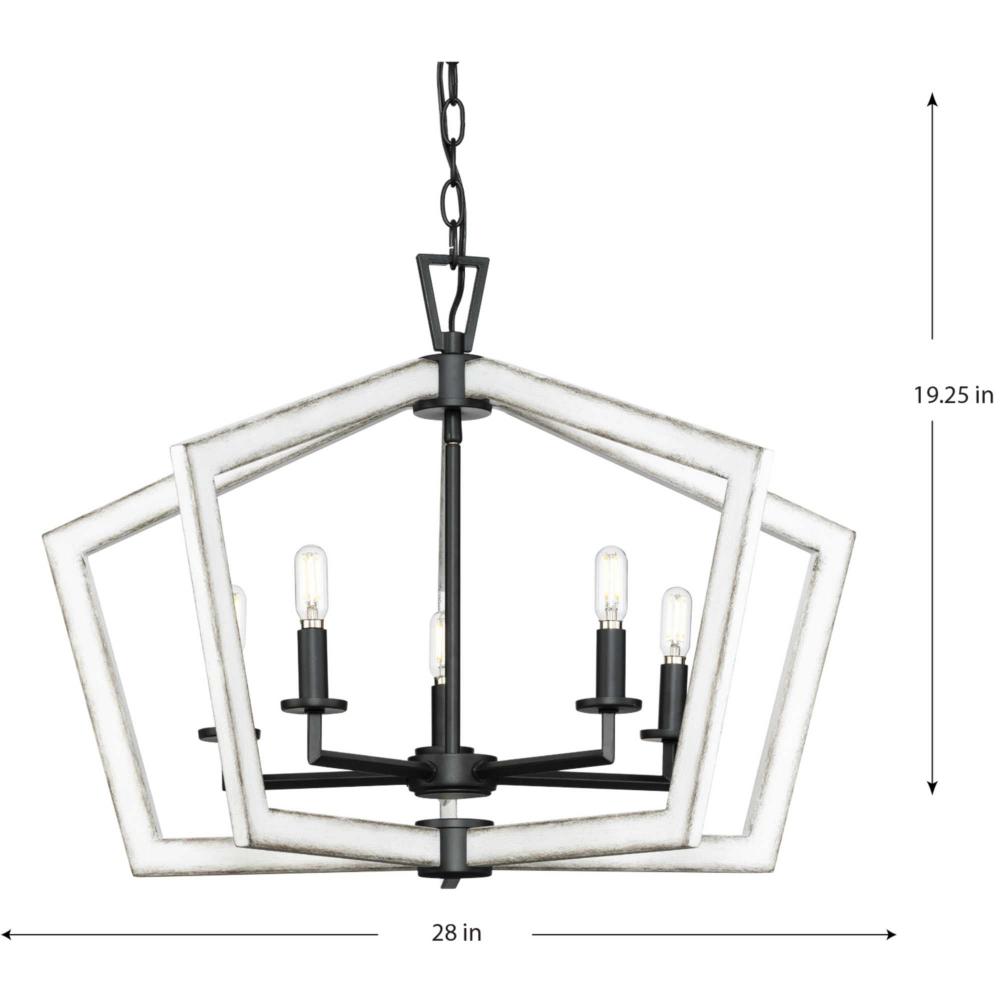 Galloway Collection Five-Light 19.25" Matte Black Modern Farmhouse Chandelier with Distressed Wh