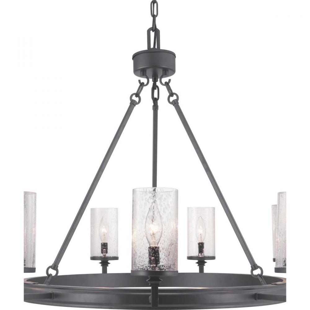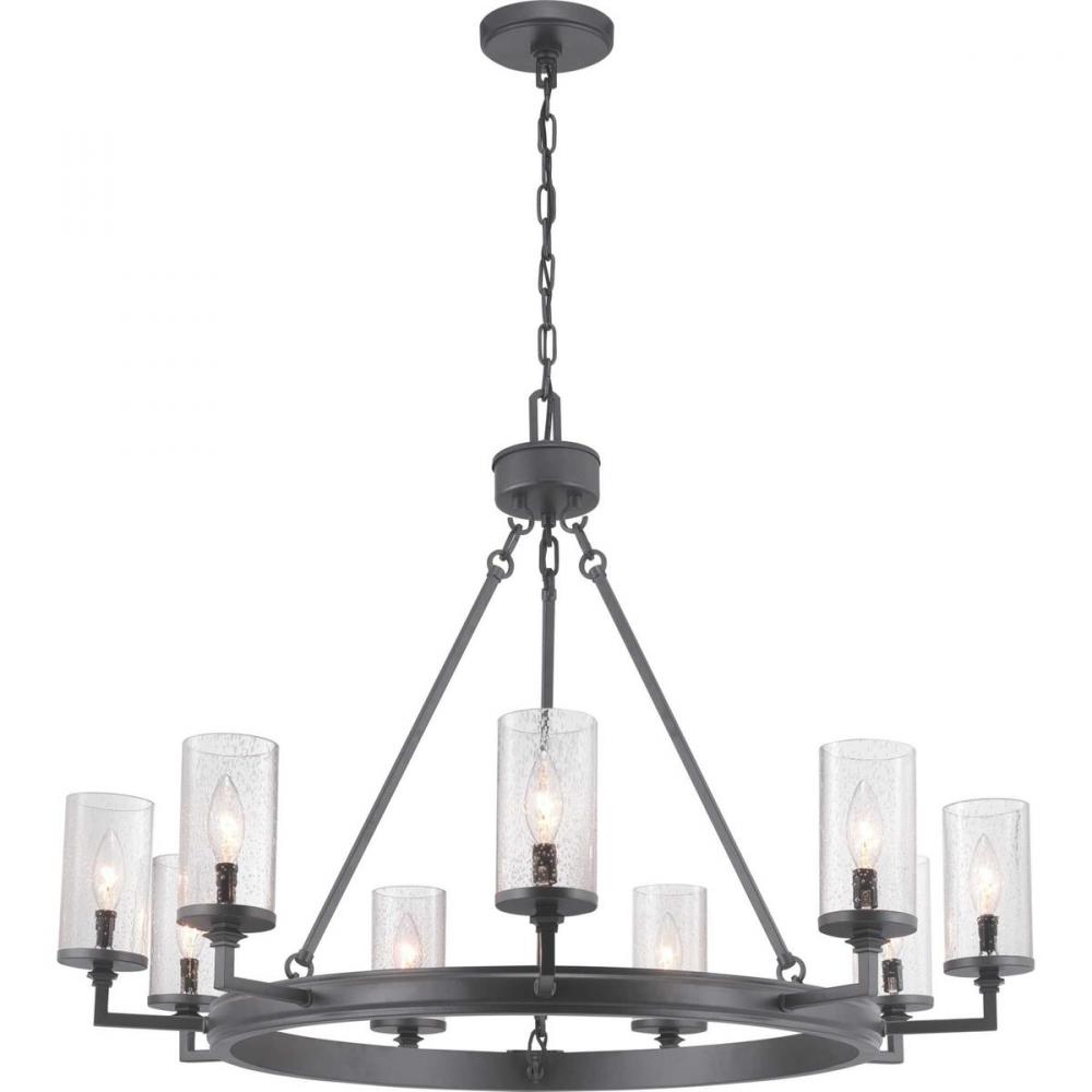 Gresham Collection Nine-Light Graphite Clear Seeded Glass Farmhouse Chandelier Light
