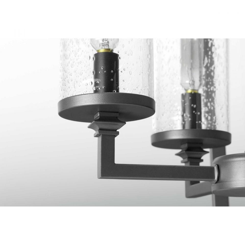 A display of substantial style in a nine-light chandelier, Gresham Collection’s frame was inspired by the elegance of traditional iron structures. Specific attention to forging details creates a distinctive collection for Transitional and Farmhouse interior spaces. Seeded glass shades and a Graphite finish pair together to complete the look.
