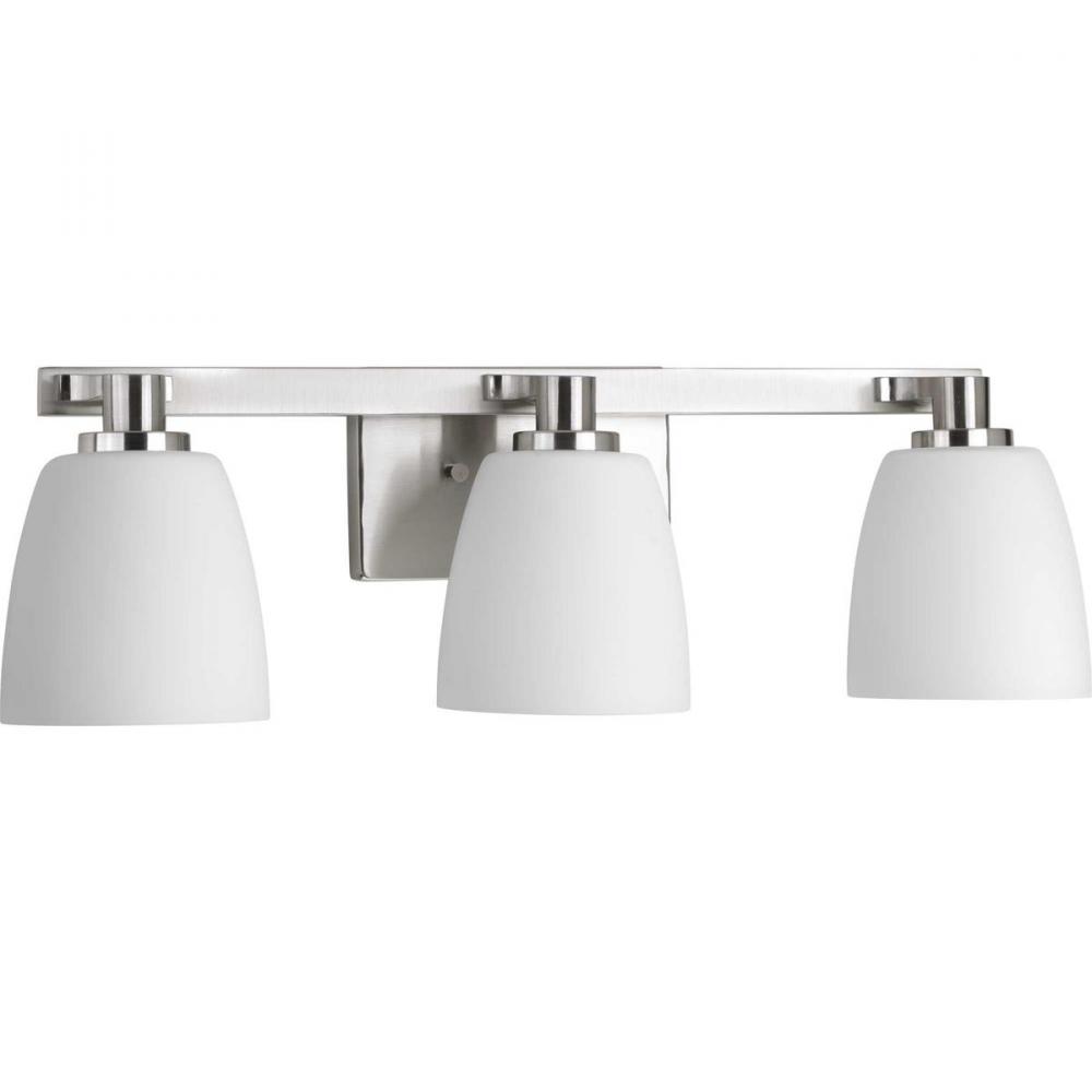 Ideal for a bathroom;Perfect for coastal, modern, and transitional style settings;Beautiful brushed nickel finish;Elegant etched opal glass shades;Mount the light fixture facing up or down;Use 3 medium base bulbs that are sold separately (100 W max - LED/C