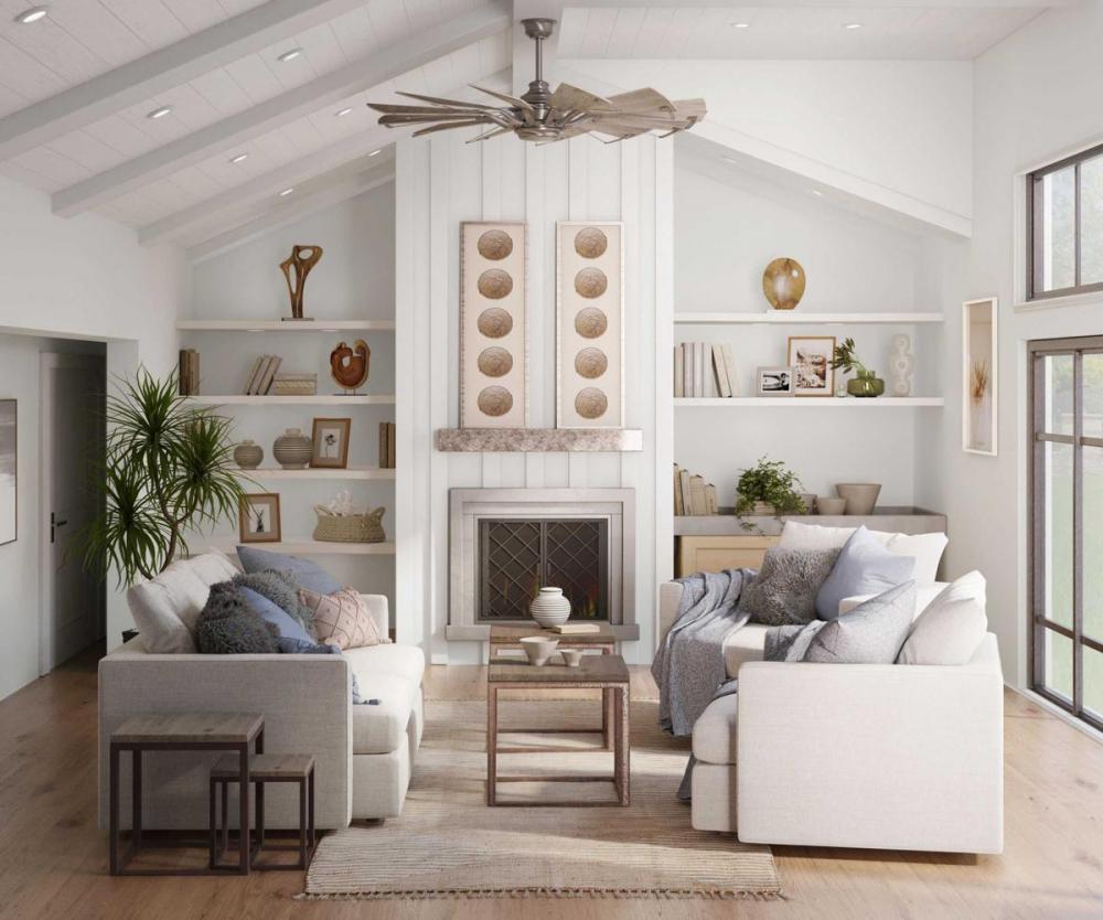 Springer is a statement-making ceiling fan with a rustic flair and Antique Nickel finish and White Barnwood blades. The 12-blade, 60 in ceiling fan was inspired by the form and function of a windmill and is ideal for Farmhouse, Industrial and Transitional interior settings. A full function remote control with batteries is included along with a dual mount canopy that accommodates flat or sloped ceilings.