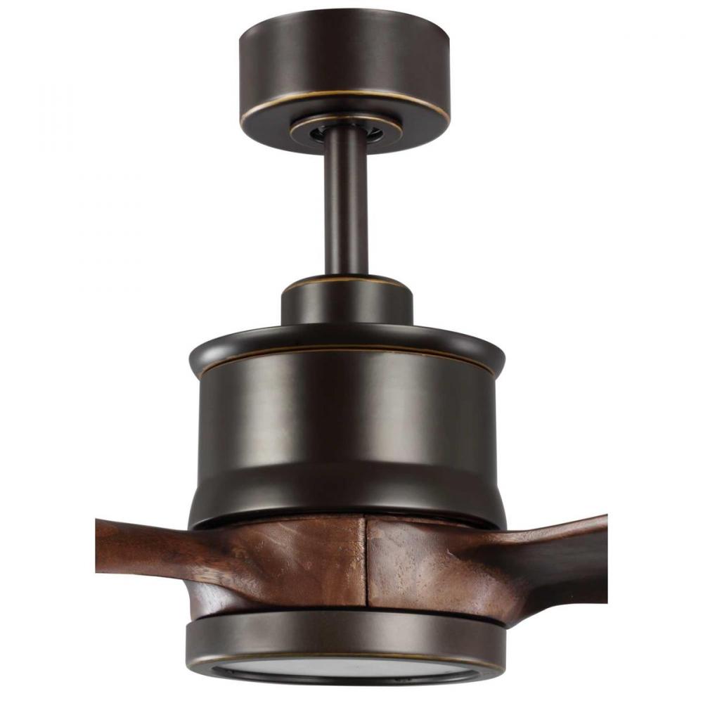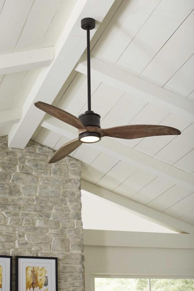 Farris features three solid wood carved blades to form a sleek, modern design. The 60 in ceiling fan includes an integrated LED light kit that is removable to provide the option in non-illuminated applications. Oil Rubbed Bronze finish. A full function remote control with batteries is included, and the dual mount canopy accommodates flat or sloped ceilings.