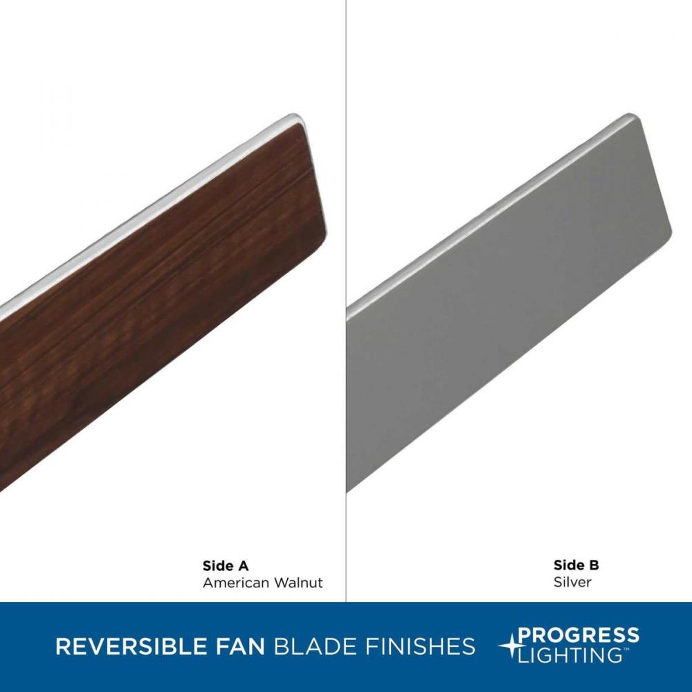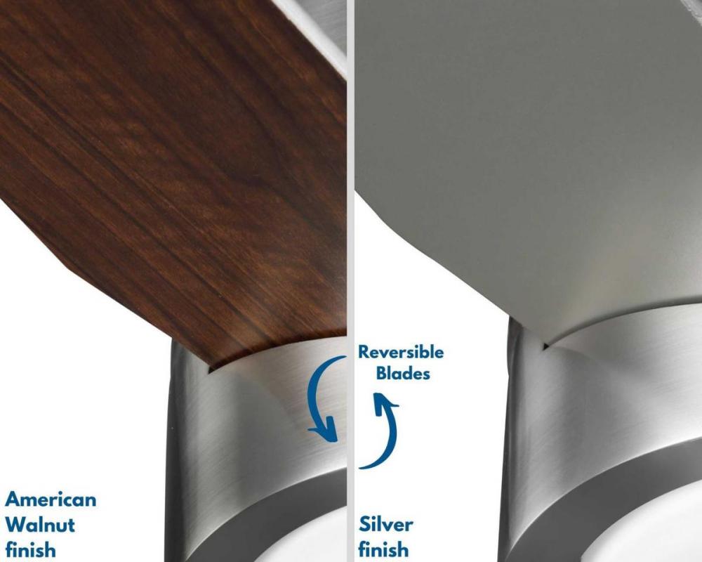 Application: Ideal for any bedroom, great room, living room, or sitting room.;Style: Perfect for mid-century modern, modern, and transitional style settings.;Blades: Three reversible plywood blades are coated in American walnut and silver finishes for extr