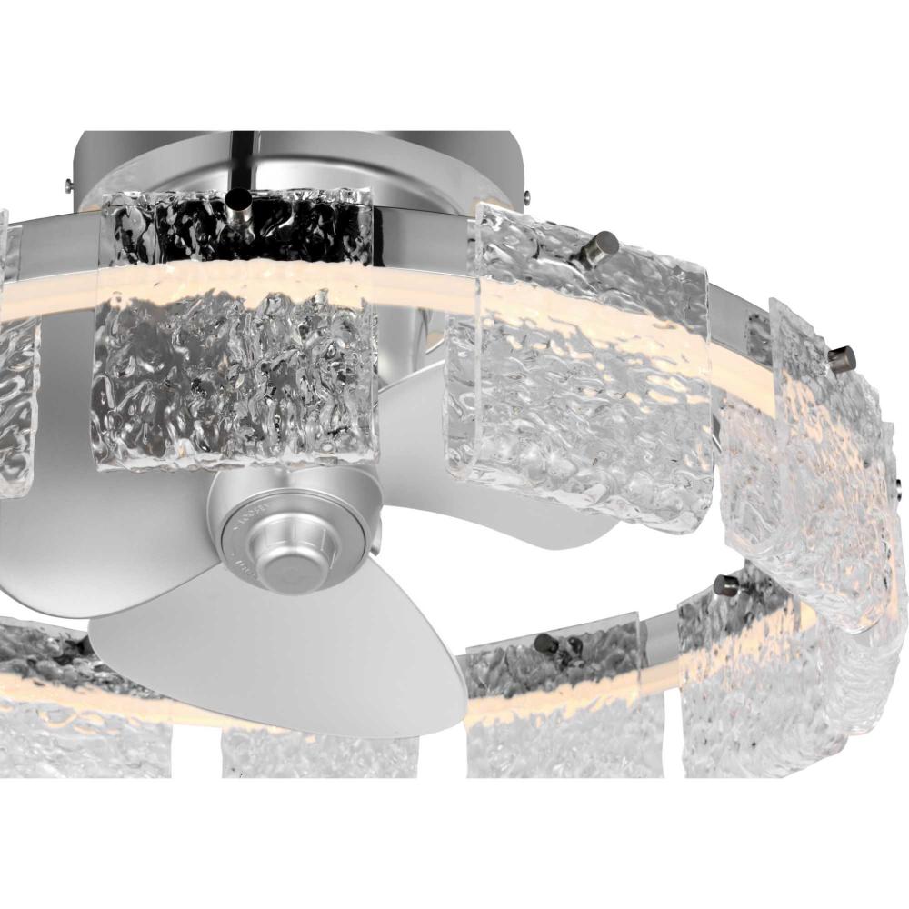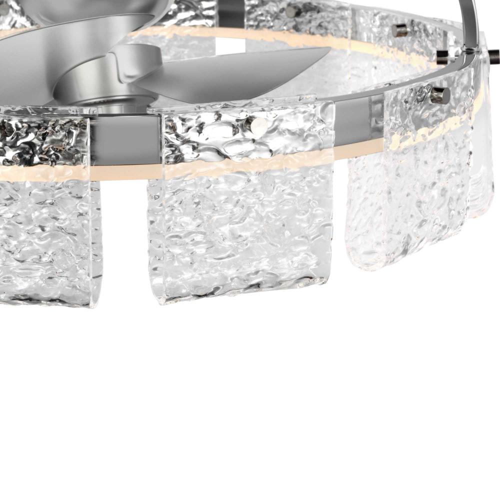 Artisanal pressed glass and a Polished Chrome finish reflect the light from integrated, dimmable edge-lit LEDs