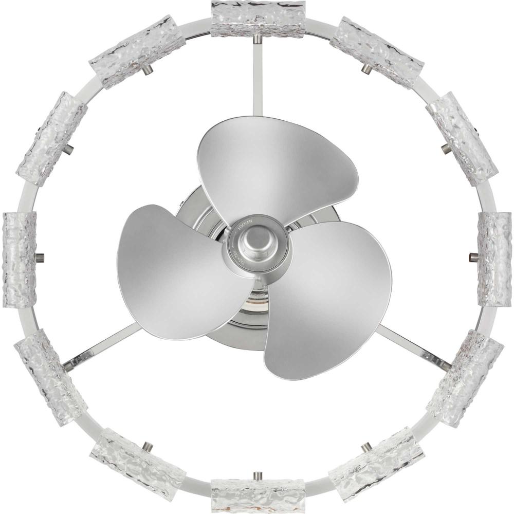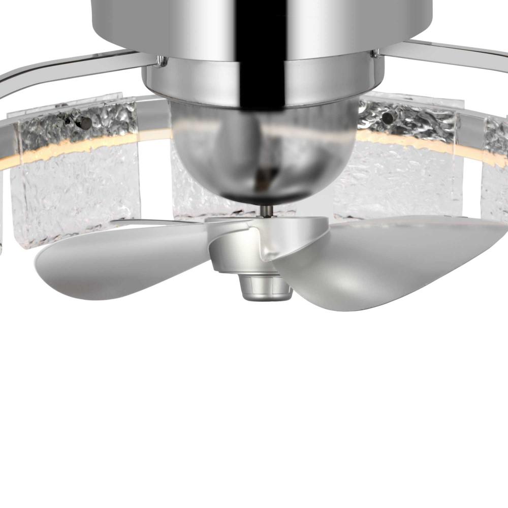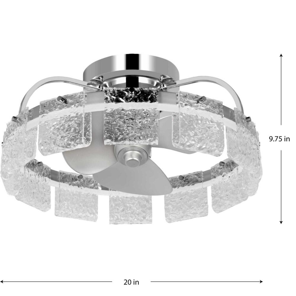 Three blade 20.62-in polished chrome ceiling fan with ornate pressed glass