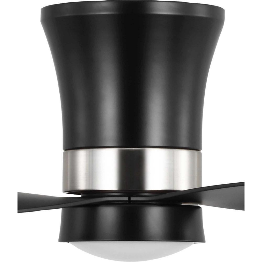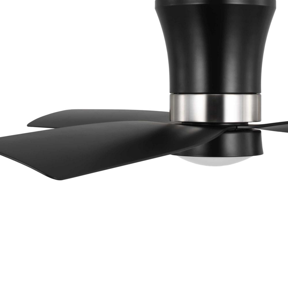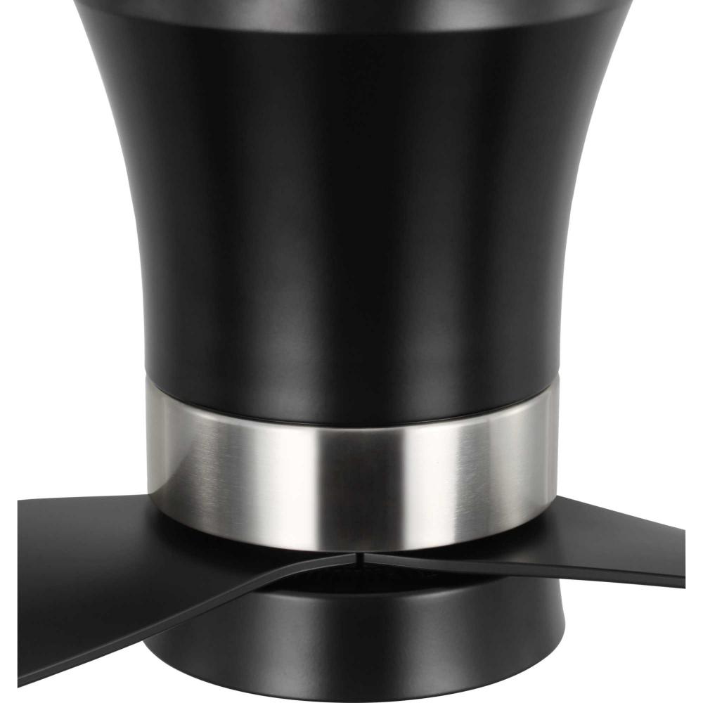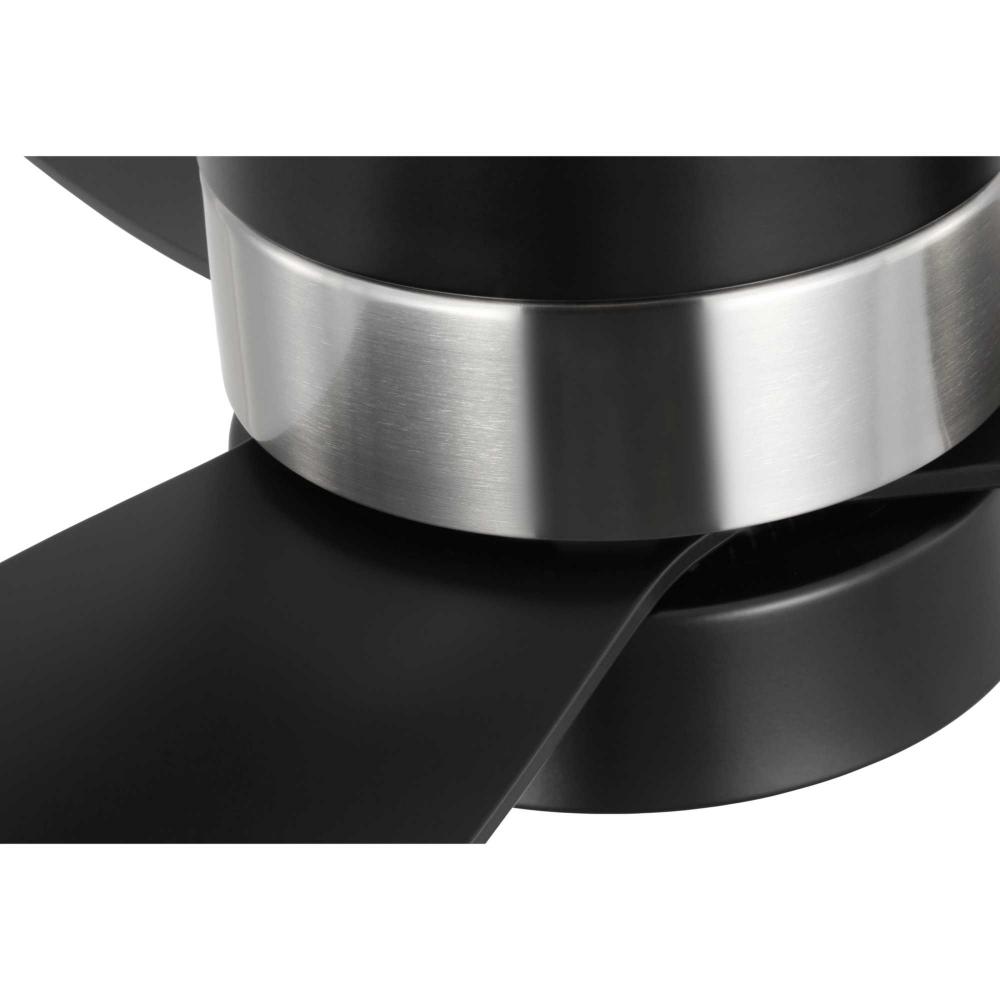 Mid-century modern style housing and blades are finished in Matte Black with a Brushed Nickel Accent