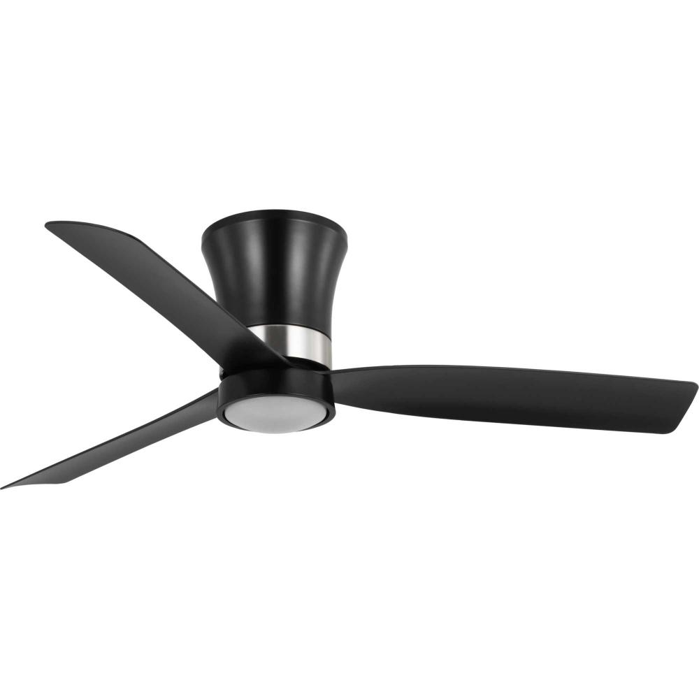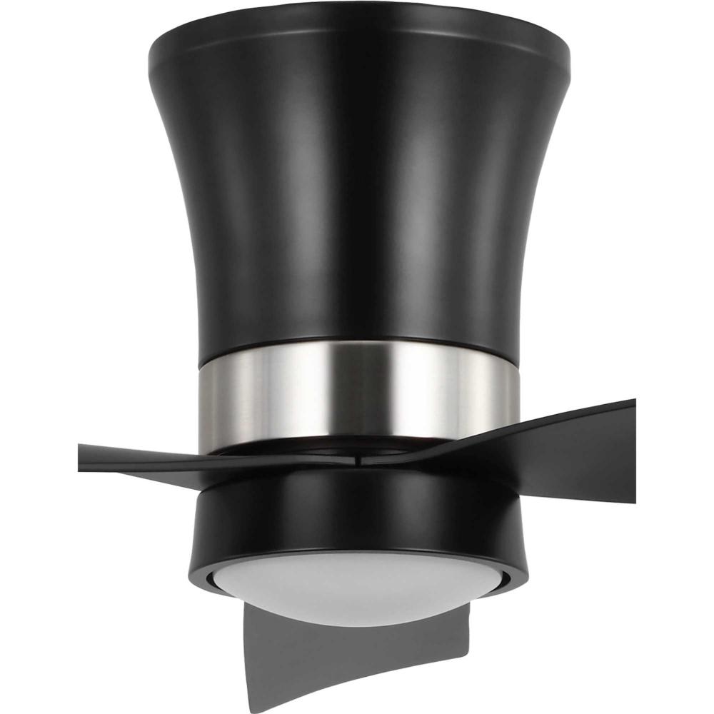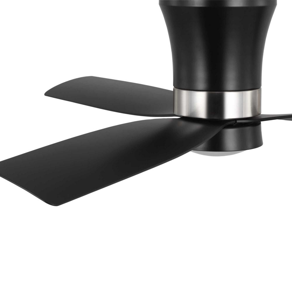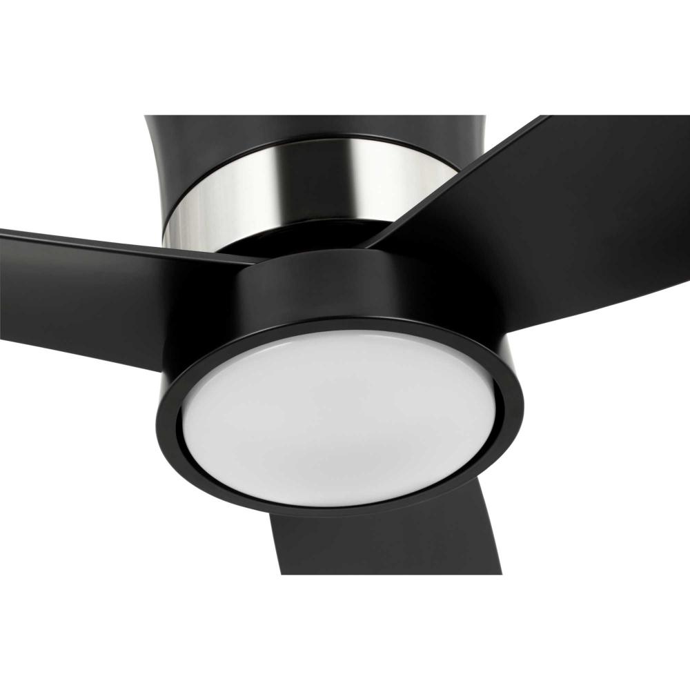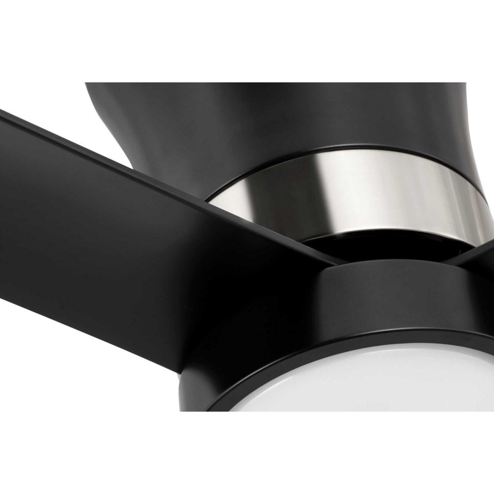 Mid-century modern style housing and blades are finished in Matte Black with a Brushed Nickel Accent