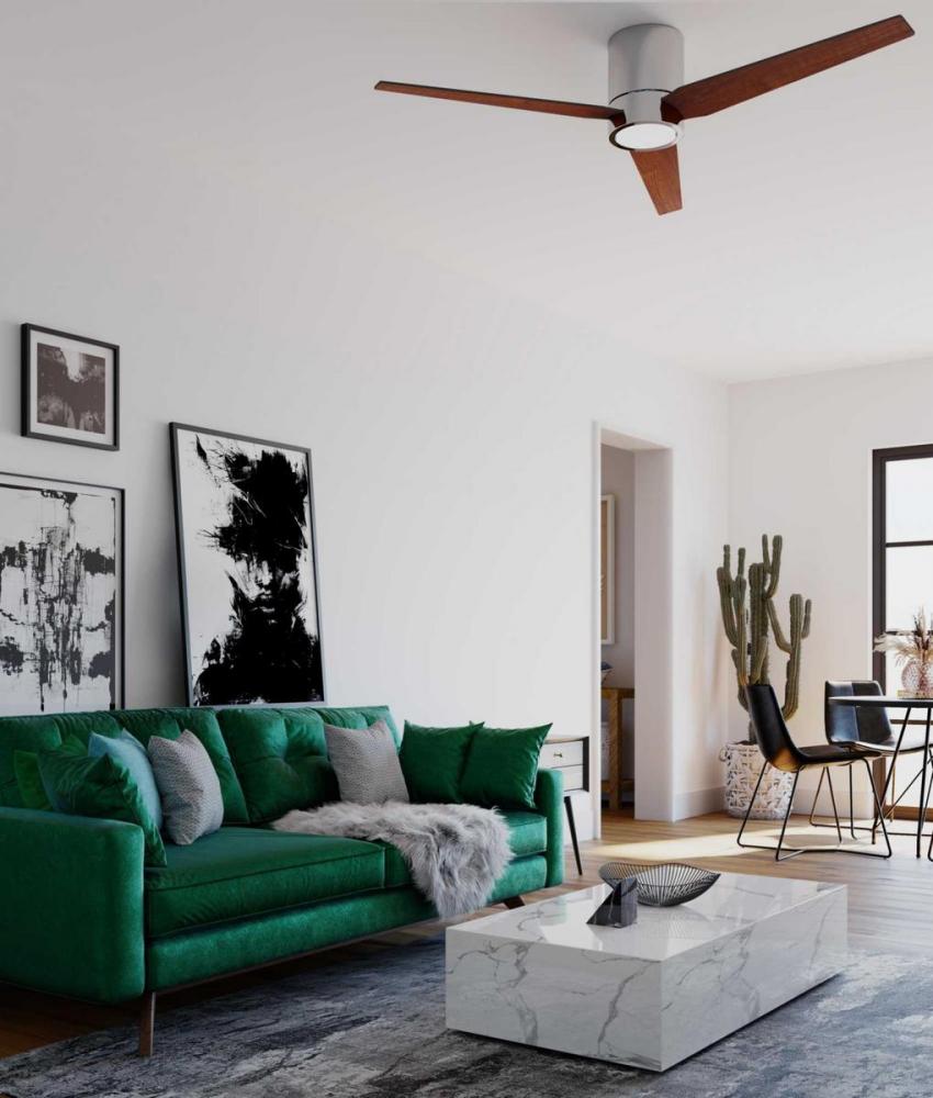 56” Braden three-blade hugger ceiling fan features an LED light source, offering both form and function with energy- and cost-savings benefit;A white opal, shatterproof shade contains a 18W dimmable, 3000K LED module with 90CRI and 1400 lumens (source);I