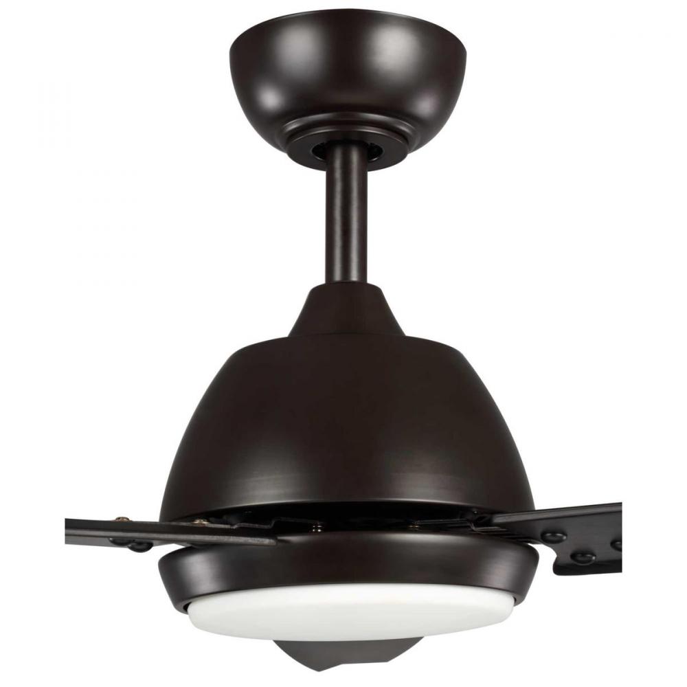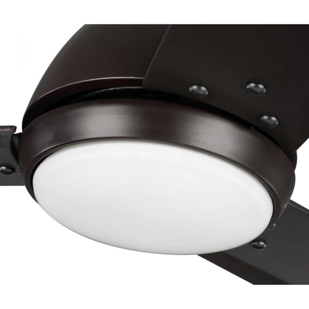 This 60 inch Oriole three-blade ceiling fan is the perfect addition to garages, industrial shops or commercial buildings to distribute the right amount of air and keep the space cool and comfortable. Oriole contains an integrated 18W LED module, with an optional finishing cap offering the user the choice to install with or without the light kit. A remote control is included. A blank off plate comes standard. Rich Architectural Bronze finish.