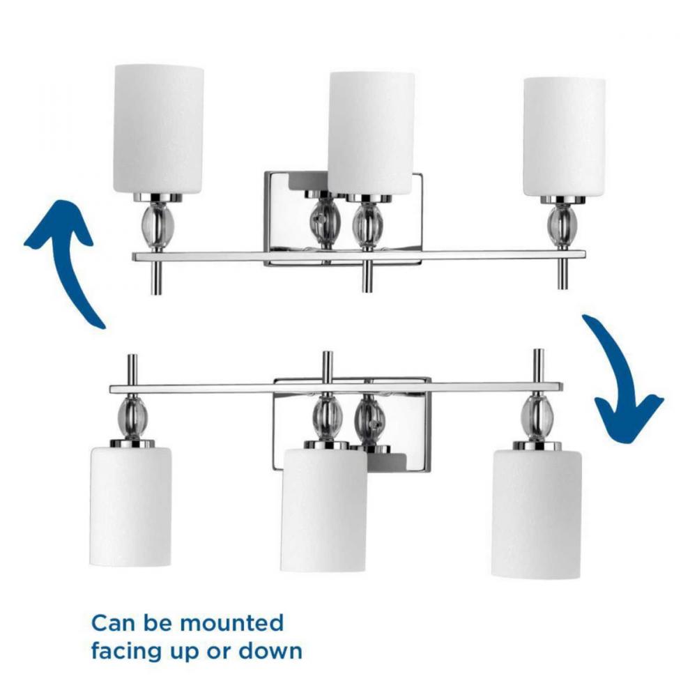Ideal for a bathroom;Perfect for coastal, luxe, modern, and transitional style settings;Crisp polished chrome finish;Elegant etched linen glass shades;Includes installation instructions and mounting hardware;Use 3 medium base bulbs that are sold separately