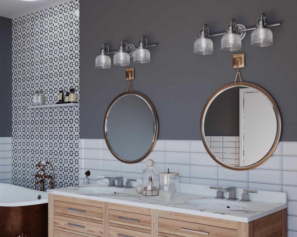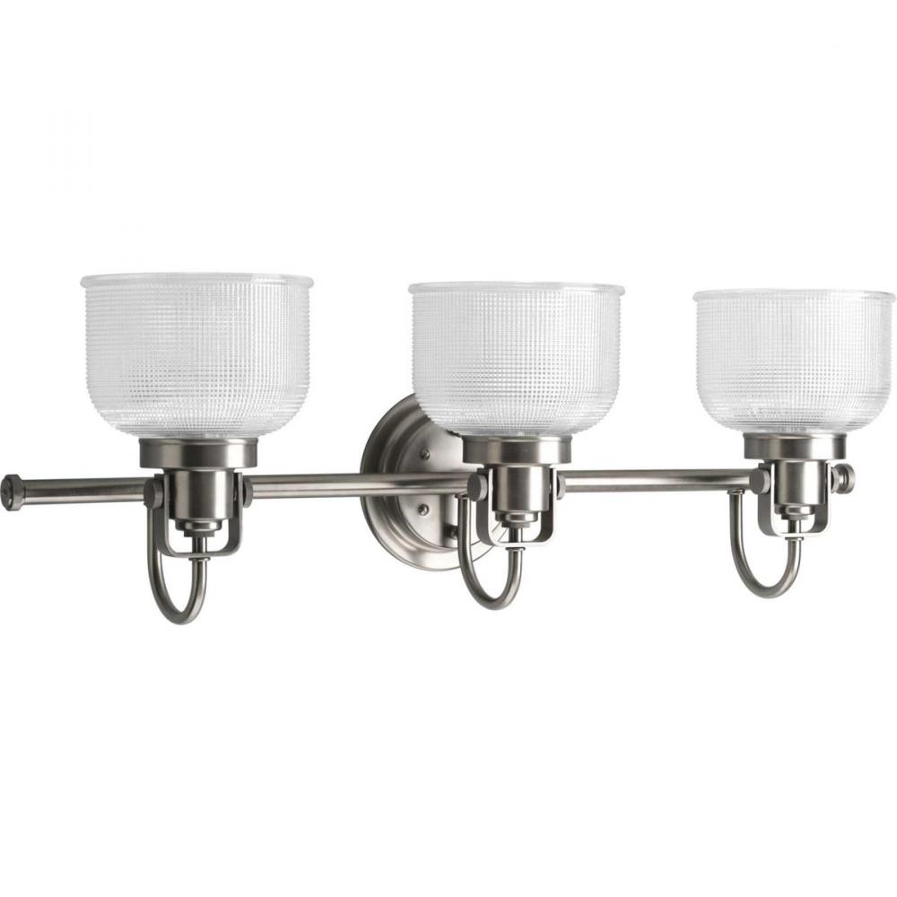 Ideal for a bathroom;Perfect for coastal, farmhouse, transitional, and vintage electric style settings;Beautiful antique nickel finish;Stunning clear double prismatic glass shades;Mount the light fixture facing up or down;Use 3 medium base bulbs that are s