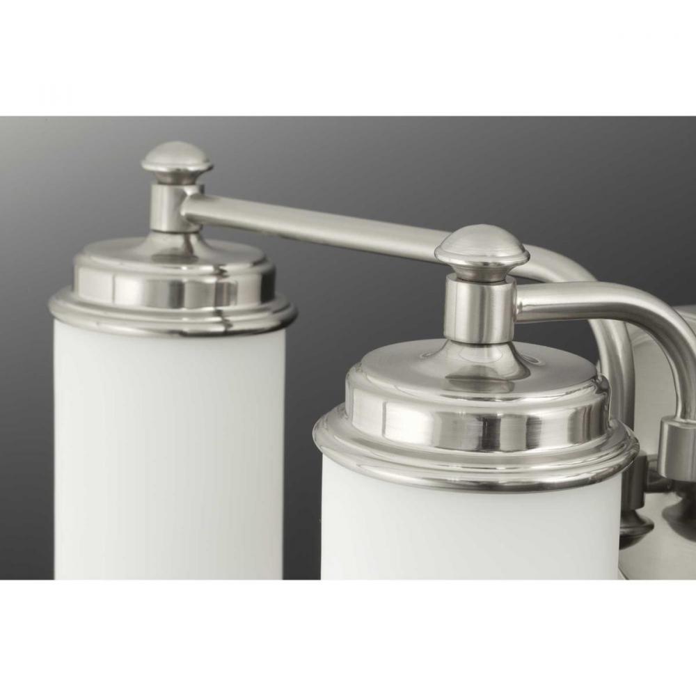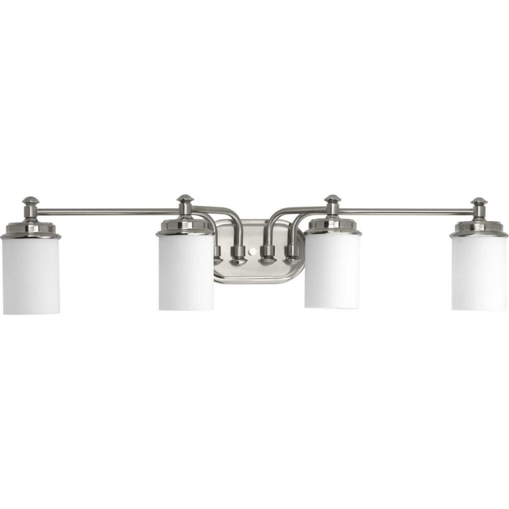 Ideal for a bathroom;Perfect for coastal, farmhouse, and transitional style settings;Beautiful brushed nickel finish;Elegant etched opal glass shades;Mount the light fixture facing up or down;Use 4 medium base bulbs that are sold separately (100 W max - LE