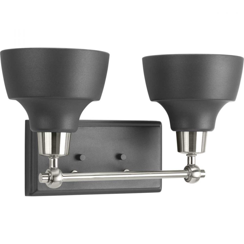 brushed nickel;twolight bath;grey;incandescent;bath vanity;traditional;casual;urban industrial;bath light;bath vanity light;bathroom light;bathroom wall light;bath wall light;bath bracket;bath wall bracket