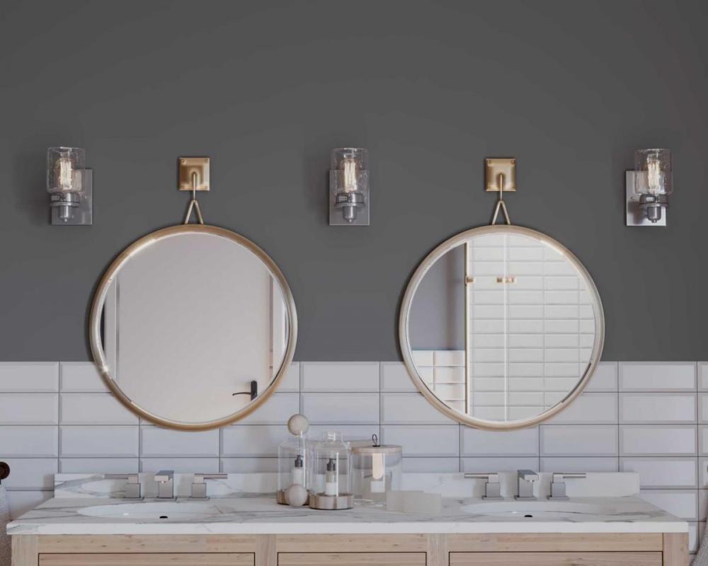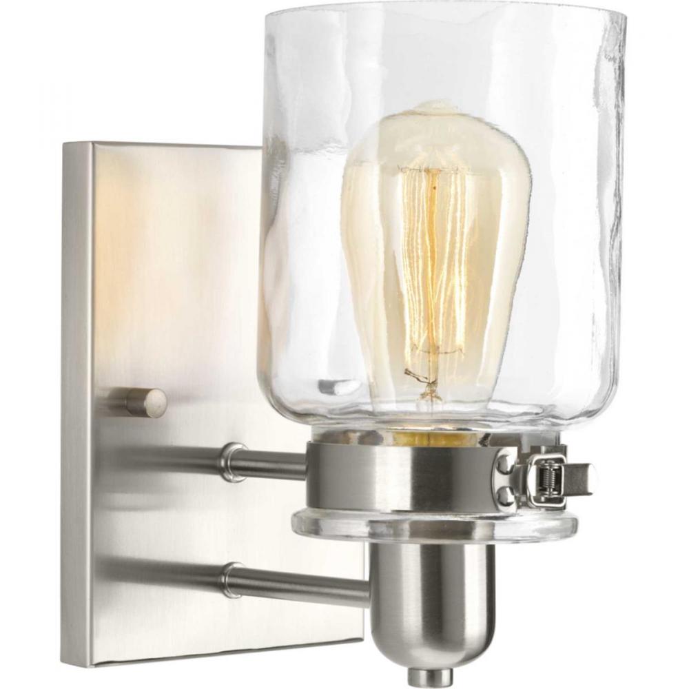 brushed nickel;onelight bath;grey;incandescent;bath vanity;traditional;casual;modern farmhouse;bath light;bath vanity light;bathroom light;bathroom wall light;bath wall light;bath bracket;bath wall bracket