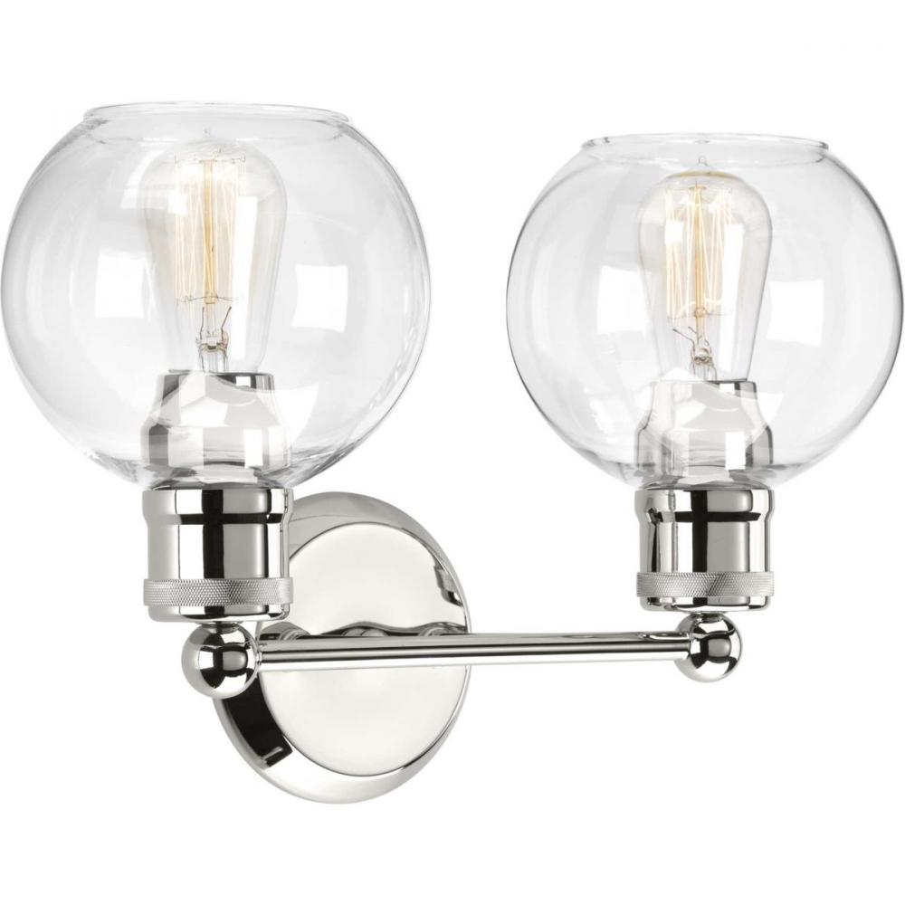 polished nickel;twolight bath;grey;incandescent;bath vanity;traditional;casual;urban industrial;bath light;bath vanity light;bathroom light;bathroom wall light;bath wall light;bath bracket;bath wall bracket