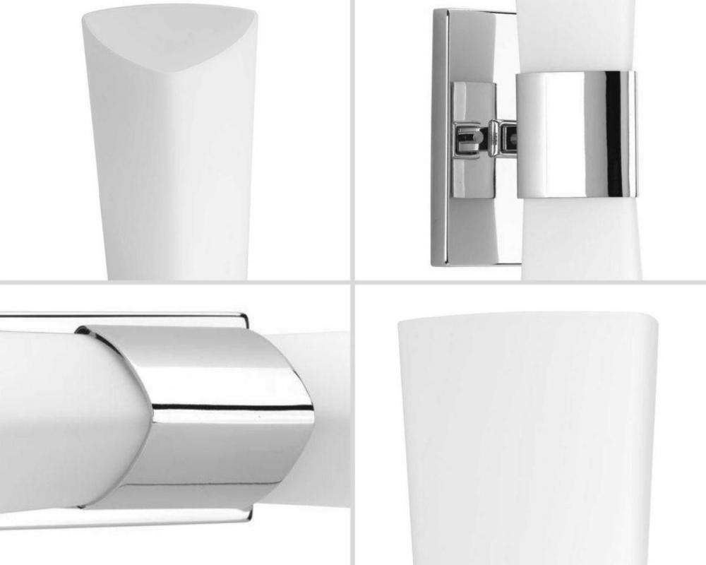 Ideal for a bathroom;Perfect for modern and transitional style settings;Crisp polished chrome finish;Elegant etched opal glass shades;Fixture can mount horizontal and vertical;Use 2 medium base bulbs that are sold separately (100 W max - LED/CFL/incandesce