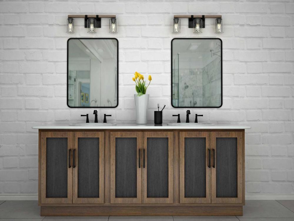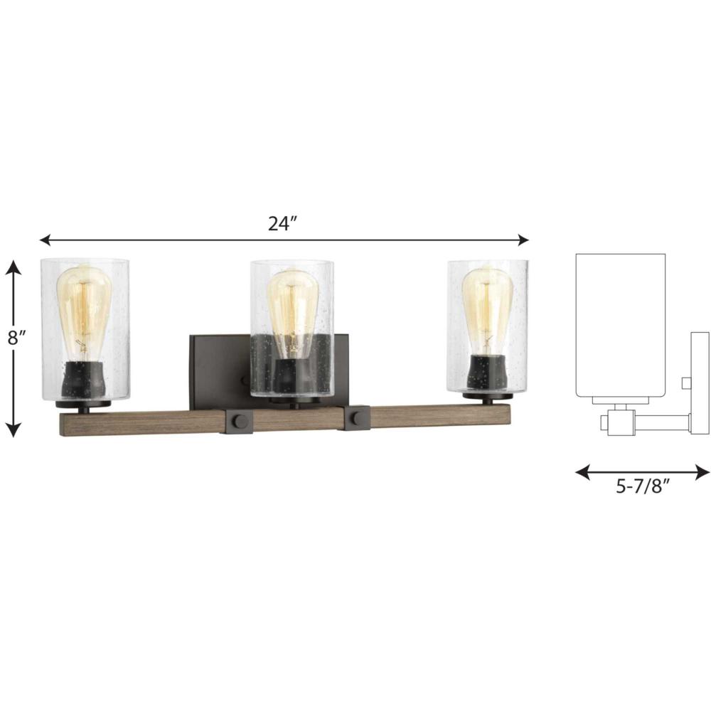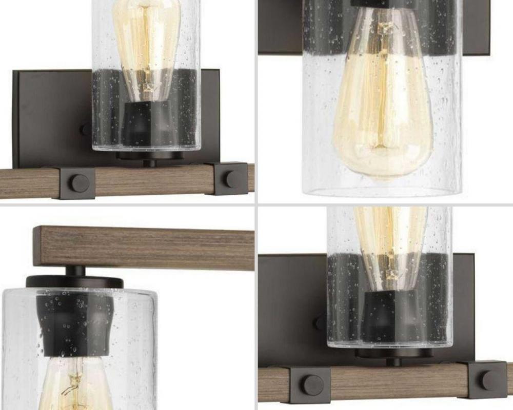 Ideal for a bathroom;Perfect for farmhouse, rustic, and urban industrial style settings;Handsome antique bronze finish with faux-painted wooden plank;Rustic clear seeded glass shades;Mount the light fixture facing up or down;Use 3 medium base bulbs that ar