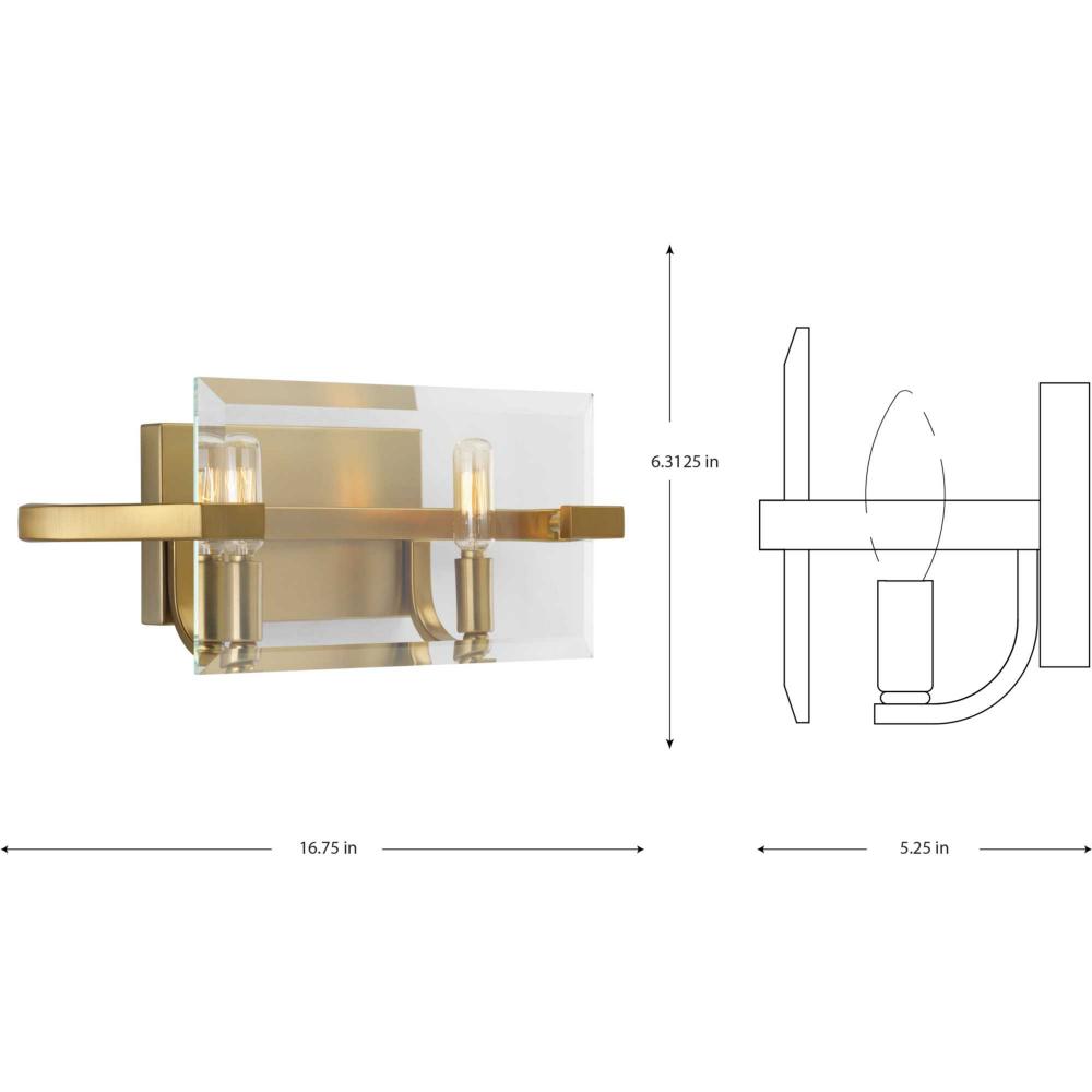 A stylish Brushed Bronze finish frames brilliant clear beveled glass panels in the Cahill collection two-light bath & vanity. Ideal for luxe or mid-century modern interiors, the visual interest provides a reinvention of the popular glass design.
