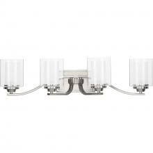 Ideal for a bathroom;Perfect for craftsman, modern, modern craftsman, modern mountain, and transitional style settings;Gorgeous graphite finish;Crisp clear glass outer shade surrounds etched glass;Mount the light fixture facing up or down;Use 4 medium base