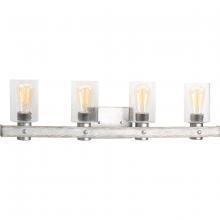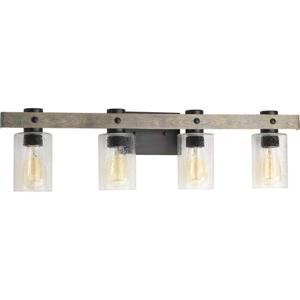 Ideal for a bathroom;Perfect for coastal, farmhouse, rustic, and urban industrial style settings;Gorgeous graphite finish with faux painted weathered driftwood accents;Rustic clear seeded glass shades;Mount the light fixture facing up or down;Use 4 medium