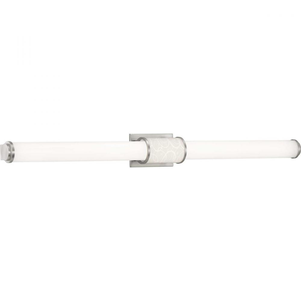 Ideal for a bathroom;Perfect for modern style settings;Beautiful brushed nickel finish;Crisp white acrylic shade;Fixture can mount horizontal and vertical;Includes 1 integrated LED (42 W), 3400 lumens, 3000 K, 90 CRI, dimmable;Measures 48-inch width by 4.