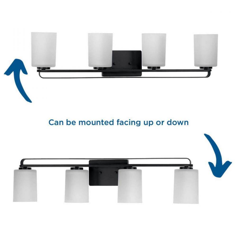APPLICATION: Distinguish your home with clean modern design with the League Collection Four-Light Matte Black and Etched Glass Contemporary Bath Vanity Light ideal for any bathroom.;STYLES: Perfect for modern farmhouse and contemporary style settings.;FINI