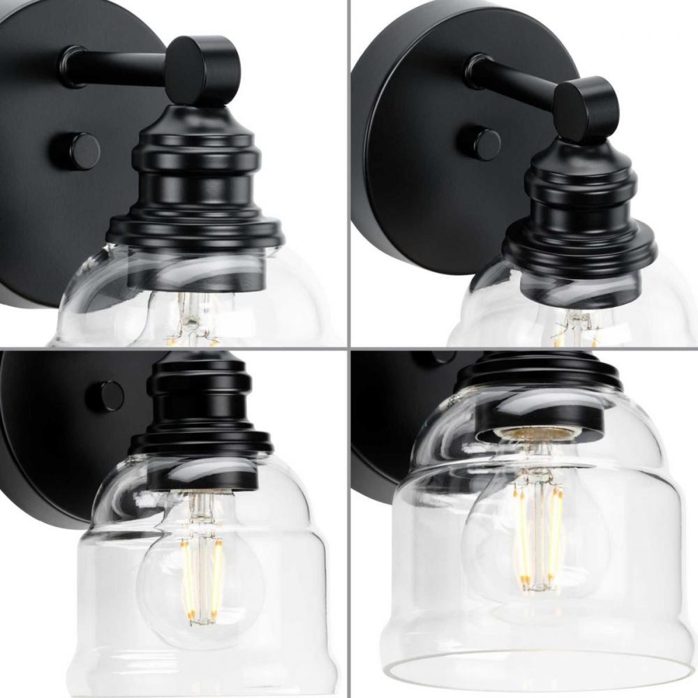 Vintage details abound in Ambrose, creating an ageless balance of style and substance. Turned metal fittings support clear glass shades that display nostalgic charm. A matte black finish is a nod to its inspiration of yesteryear and makes it an excellent choice for farmhouse, vintage electric and transitional settings.