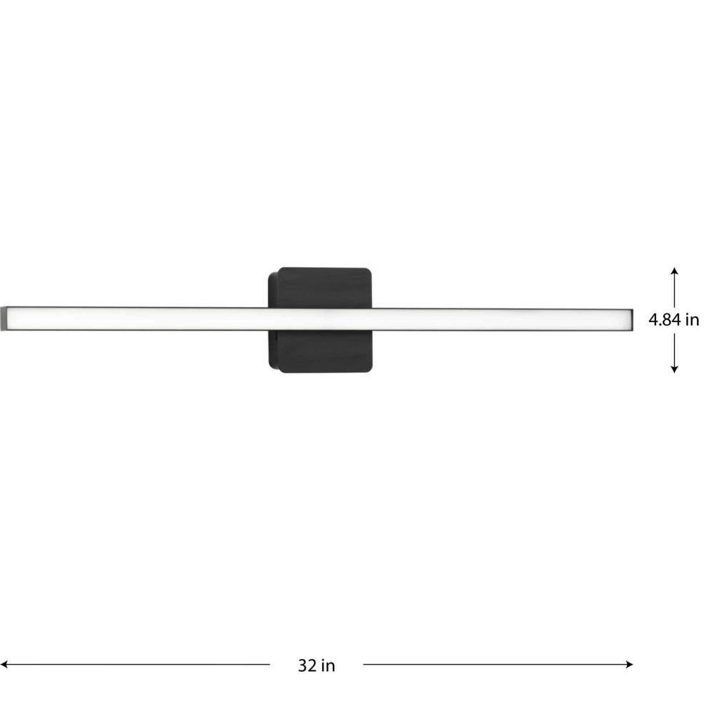The Phase 4 Collection Large LED Linear Vanity Light features color selectable technology and a sleek and minimal composition. A smooth square backplate finished in crisp matte black anchors the fixture, supporting a slim rectangular acrylic shade that creates a soft, uniform and energy-efficient light at 3000K, 4000K or 5000K. This versatile luminaire can be mounted as a wall sconce or as a vanity light above sinks and vanities, lending its surroundings a tailored touch. The bath light's versatile design is ideal for any bathroom in contemporary or modern commercial or residential settings. Progress Lighting products are designed for exceptional quality, reliability, and functionality.
