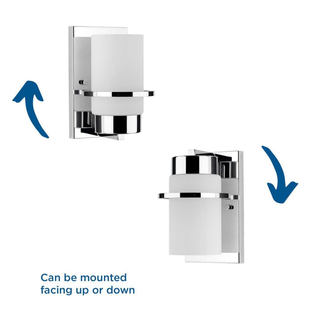 Bring a refreshed sense of style to the bath with Reiss. A polished concentric band accents a simple white glass shade, bringing an elegant appeal to the modern design. The vanity light's polished design brings balance and sophistication to modern farmhouse and contemporary settings.
