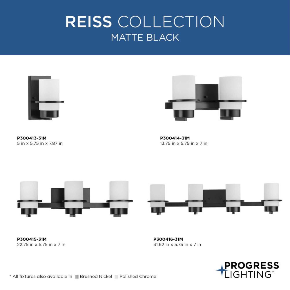 Bring a refreshed sense of style to the bath with Reiss. A polished concentric band accents a simple white glass shade, bringing an elegant appeal to the modern design. The vanity light's polished design brings balance and sophistication to modern farmhouse and contemporary settings.