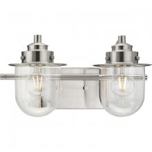 The nostalgic Northlake Collection combines classic design influences with nautical inspiration. Finished in vintage brass, the rounded diffuser and layered caps are reminiscent of floating buoys and weekends on a mountain lake. Clear glass shades cast a pleasing glow in bathrooms and powder rooms in coastal and transitional settings. This versatile fixture can be mounted up or down, increasing its design flexibility. It is cULus damp rated and has a one-year warranty to guarantee your complete satisfaction. Progress Lighting products offer exceptional quality, reliability, and functionality. .