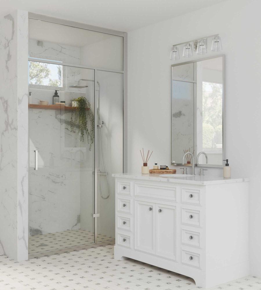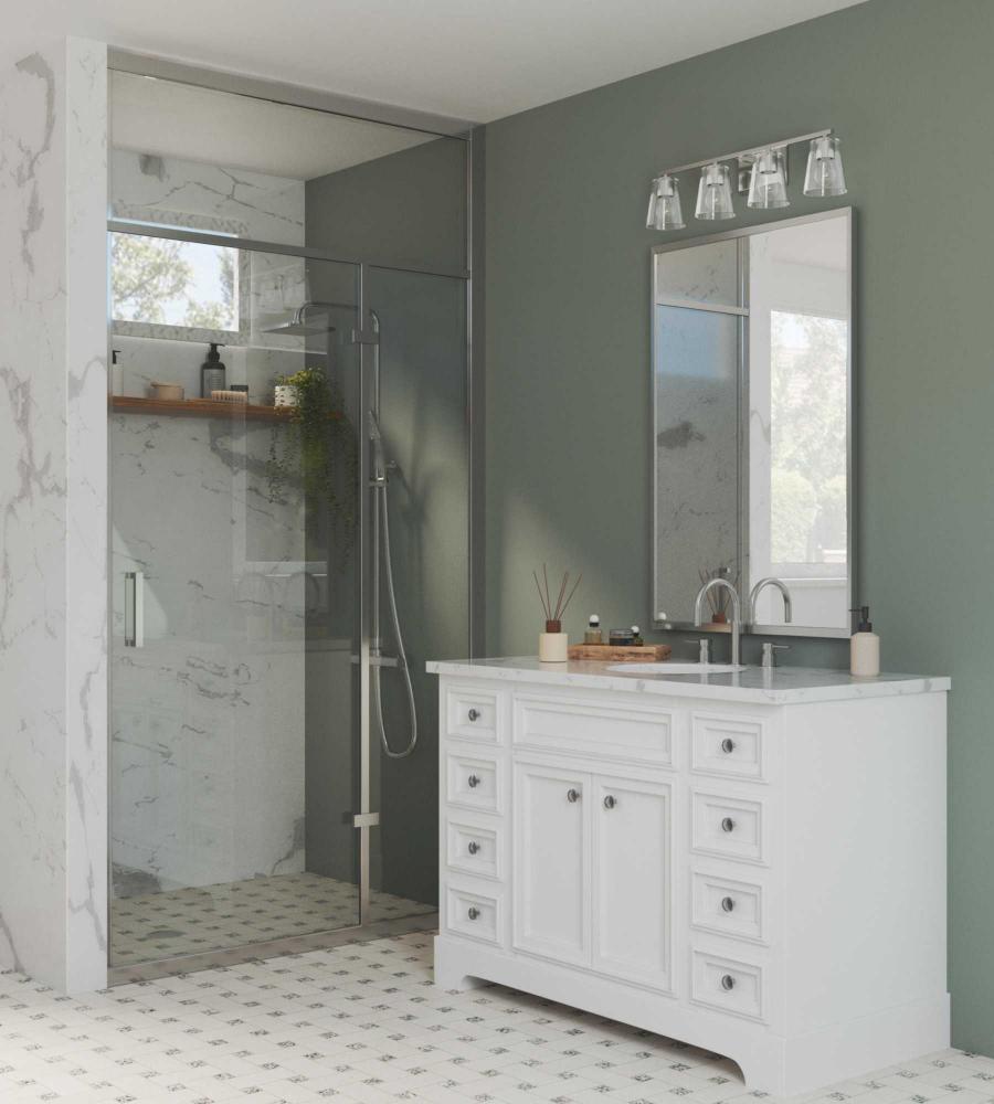 The Vertex Vanity Light provides a soft, ambient glow in bathrooms or powder rooms