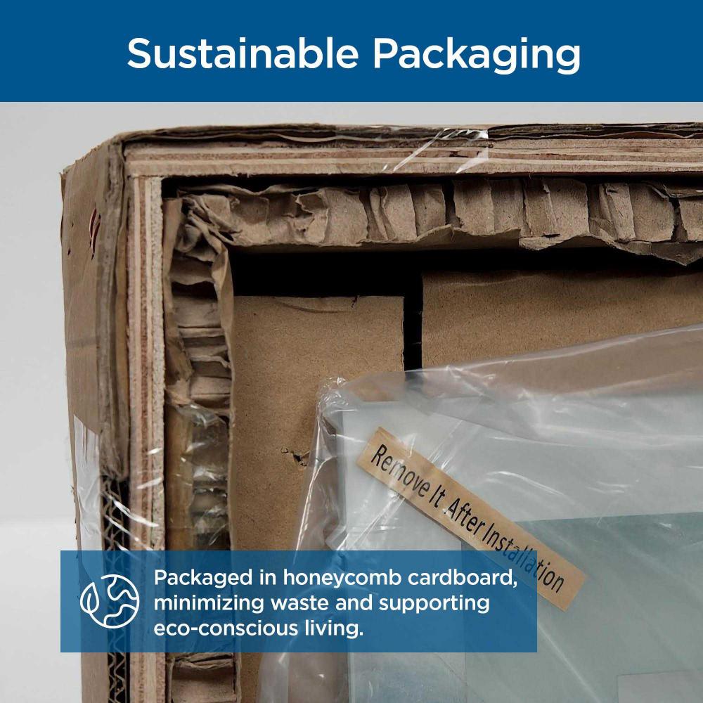 A luxe addition to the modern bath, the Captarent Oval 30-in x 36-in Illuminated Mirror brings a luminous glow to the room. Frosted LED light highlights the geometric profile of the mirror while providing a balanced wash of LED illumination. The dimmable light source is 3CCT selectable, with a choice 3000K, 4000K, and 5000K color temperature all at your fingertips with push-button touch control technology to ensure uniform and flattering illumination for your space. The mirror's versatile front-lit design is ideal for modern commercial or residential bathrooms. The mirror is packed in sustainable, honeycomb cardboard, minimizing waste and supporting eco-conscious living. It holds certifications including cETLus damp location rating, making it suitable for areas with moisture exposure. It also complies with California Title 24, JA8, and ADA standards, ensuring safety, energy efficiency, and accessibility. Progress Lighting products are designed for exceptional quality, reliability, and functionality.