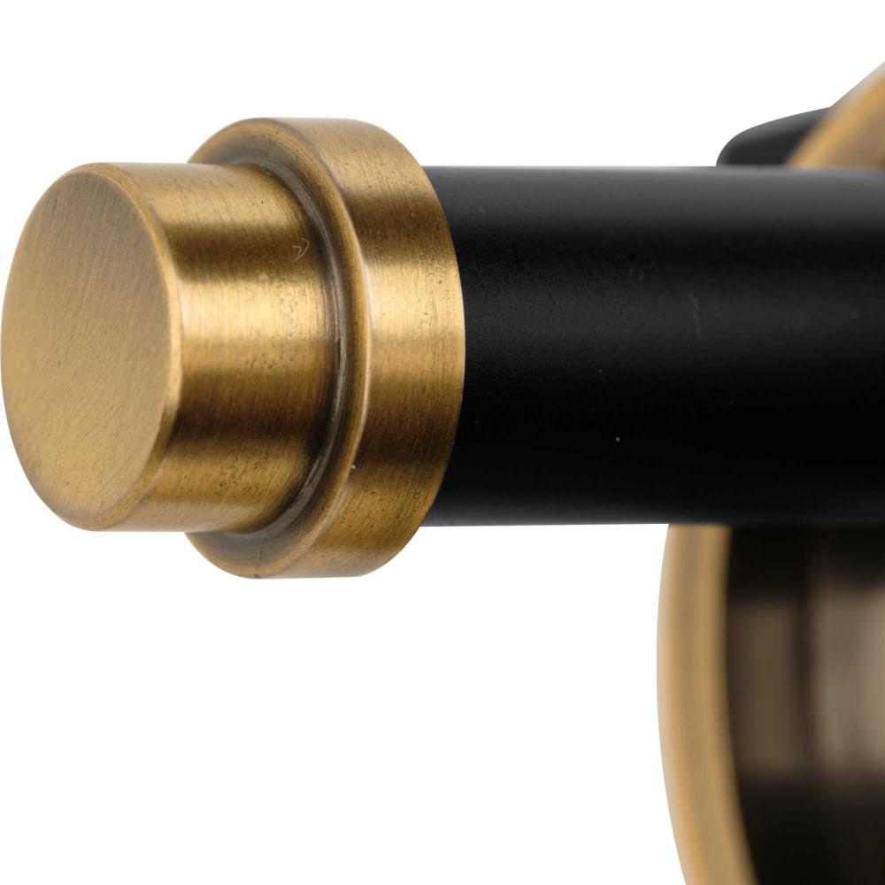 The fixture's vintage brass and matte black accents provide an elegant, detailed look in luxe industrial and contemporary interiors