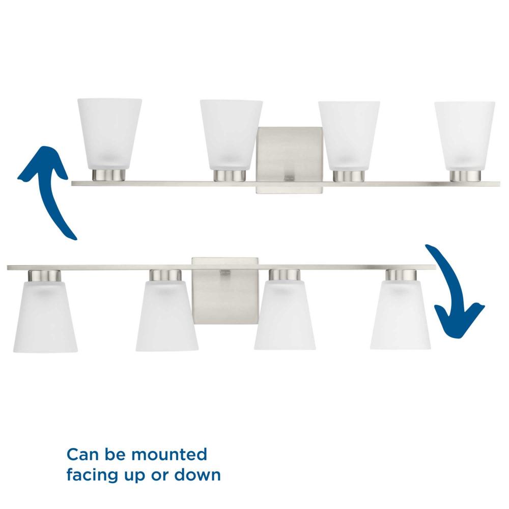 Mount the light fixture with the glass facing up or down for more design flexibility
