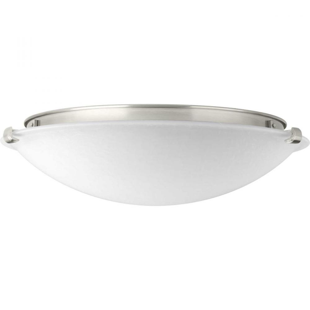 Brushed Nickel finish.;Design features a domed, linen finish glass diffuser.;Diffuser is discreetly supported from metal fittings encloses an energy-efficient light source.;1250 delivered lumens 52 lumens/watt (source);3000K color temperature, 90+ CRI.;Thi