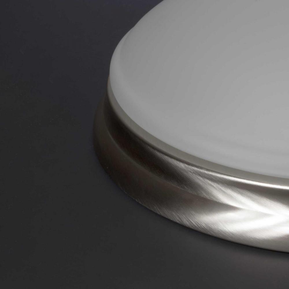 The 11 inch LED Flush mount offers traditional form factor for ambient illumination. The etched glass dominates the design with its distinctive and sculptural bowl. The elegant glass is paired with a metallic frame in a Brushed Nickel finish.