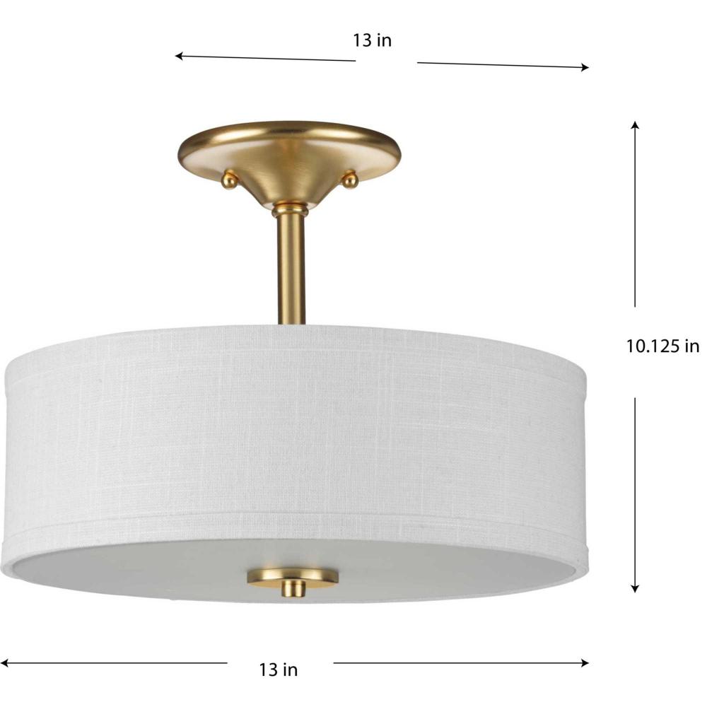 Ideal for a hall, bedroom, or foyer;Perfect for new traditional and transitional style settings;Golden satin brass finish;Summer linen fabric shade with etched glass;Mount as a semi-flush mount or flush mount;Uses 2 medium base base bulbs that are sold sep