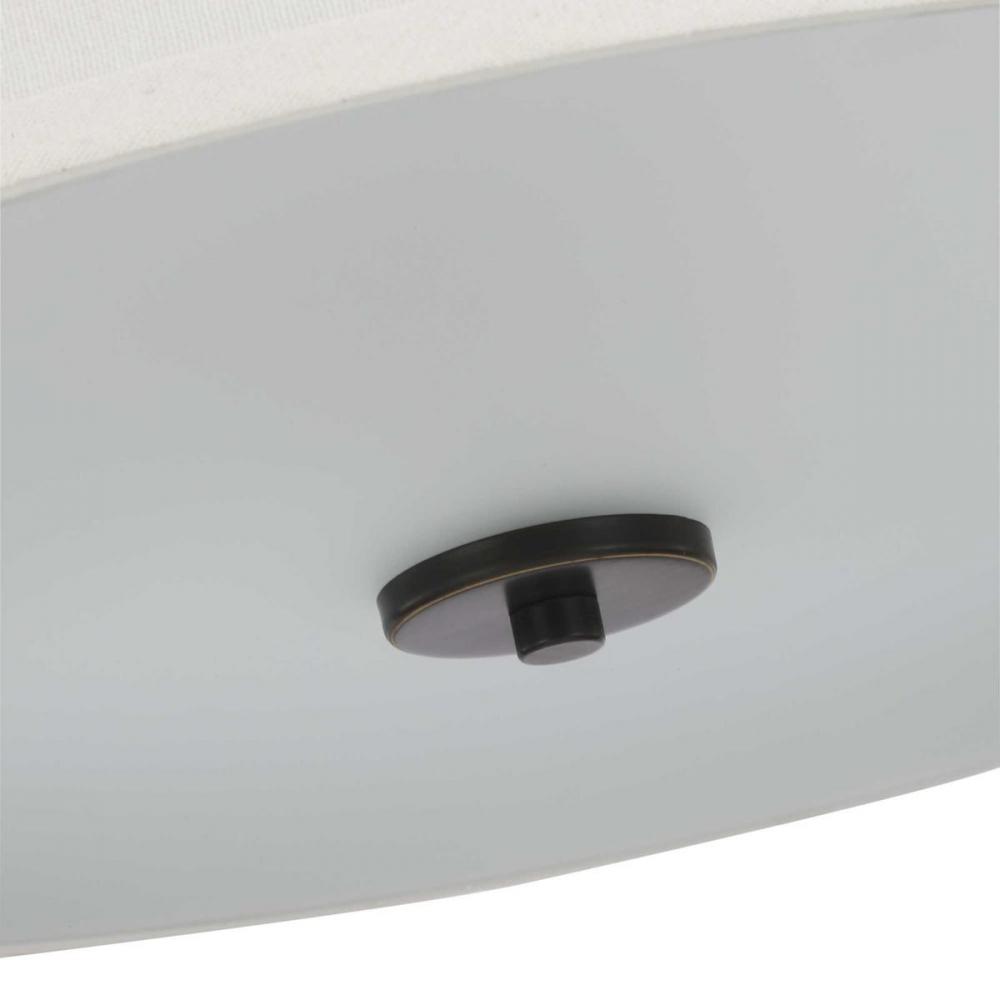 Harkening back to a simpler time, the Inspire Collection Antique Bronze Three-Light Semi-Flush Mount's timeless demeanor is sure to become a favorite for generations. A round, off-white linen shade with an etched glass diffuser steals the show and creates a beautiful muted glow. Understated metal accents complement the light fixture as it fosters a casual, friendly atmosphere.